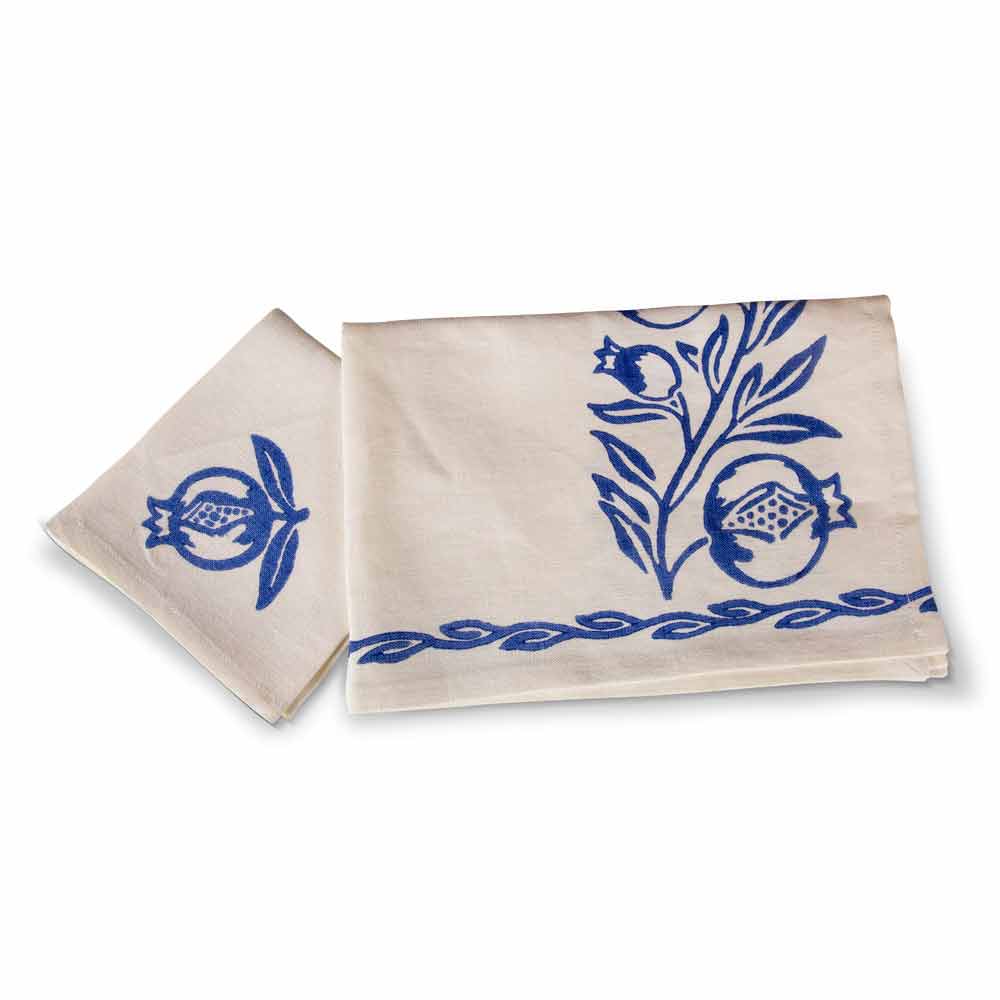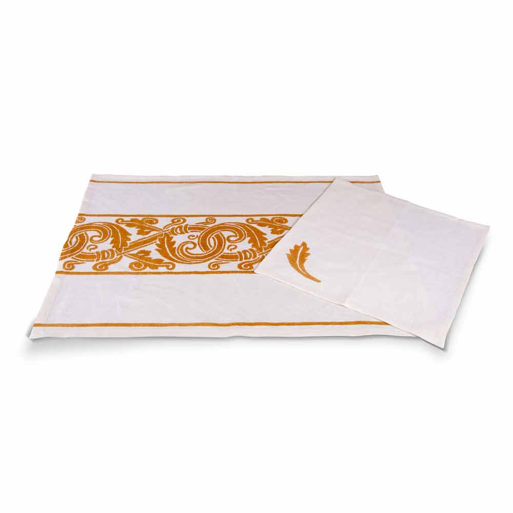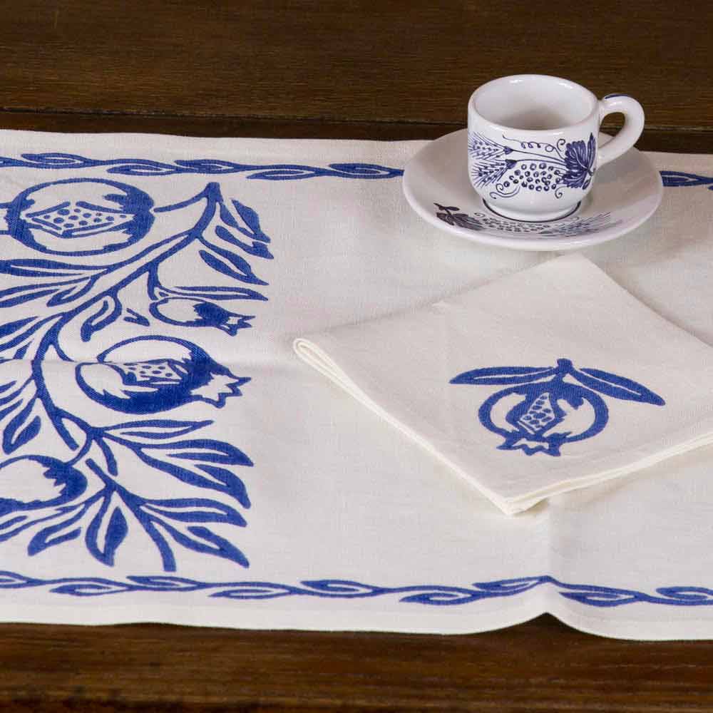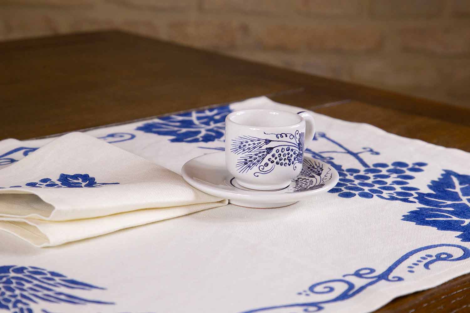 Artisan snídaně služba (prostírání a ubrousek) z čistého prádla s uměleckým potiskem na ručně zdobené starožitné tkaniny, k dispozici ve třech variantách, jedinečný kus kvality vyrobené v Itálii.