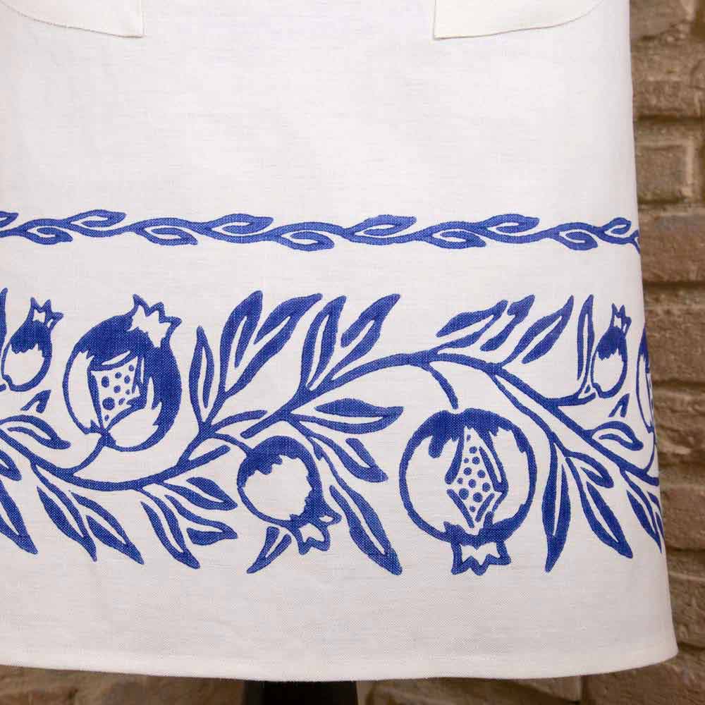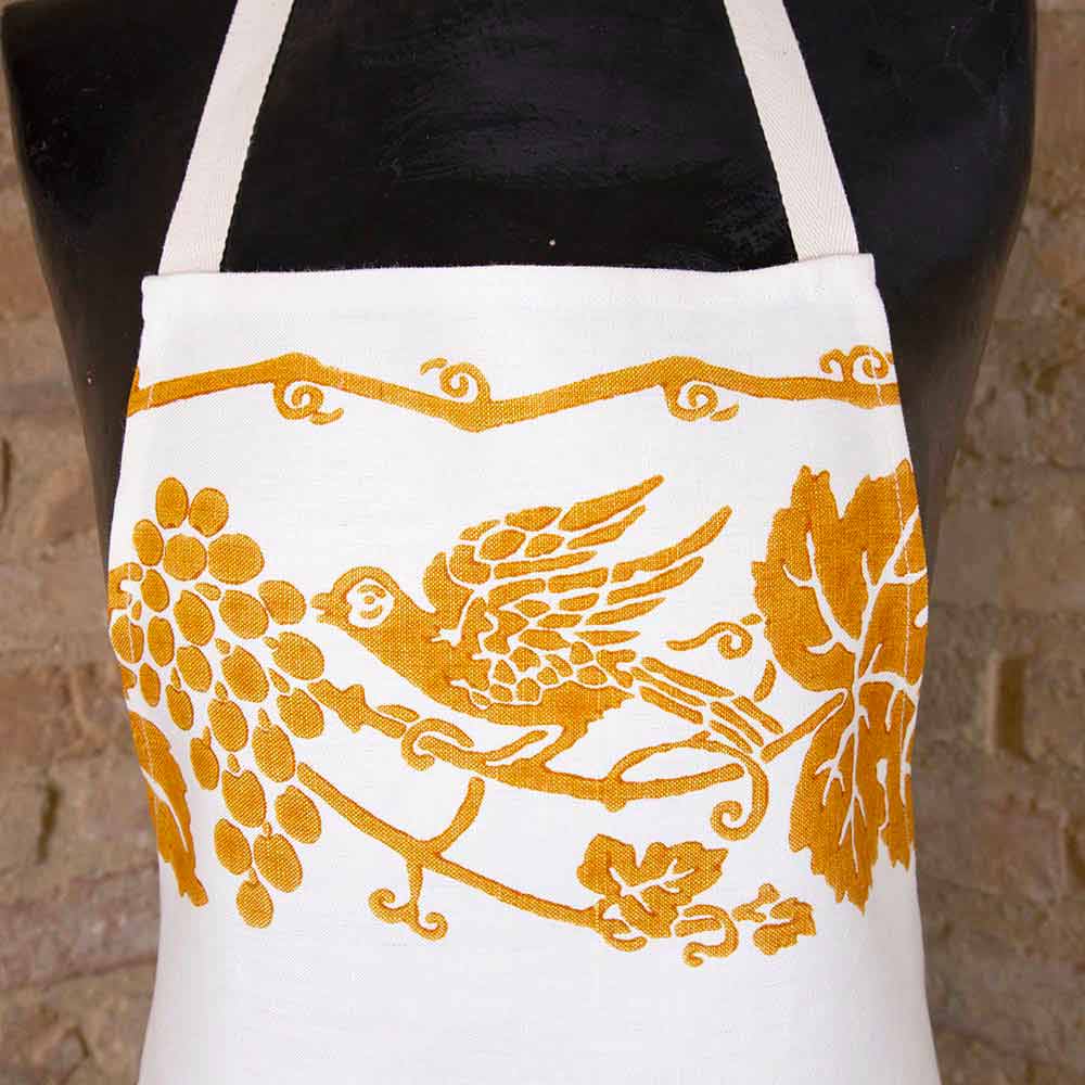 Kuchyňská zástěra s bryndáčkem a kapsami vysokého řemesla v čistém povlečení se starým ručně tištěným uměleckým designem, k dispozici ve třech variantách, jedinečný kus italské kvality.