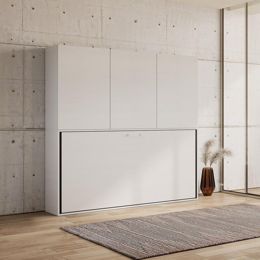 - SLOŽENÍ D : jednolůžko, které se schovává ve skříni se třemi přihrádkami (každá s vnitřní policí) s dvířky - Postel připevněná ke zdi: 199,9 x 39,2 x výška 194,4 cm / Rozložené lůžko: 199,9 x 106 x výška 194,4 cm