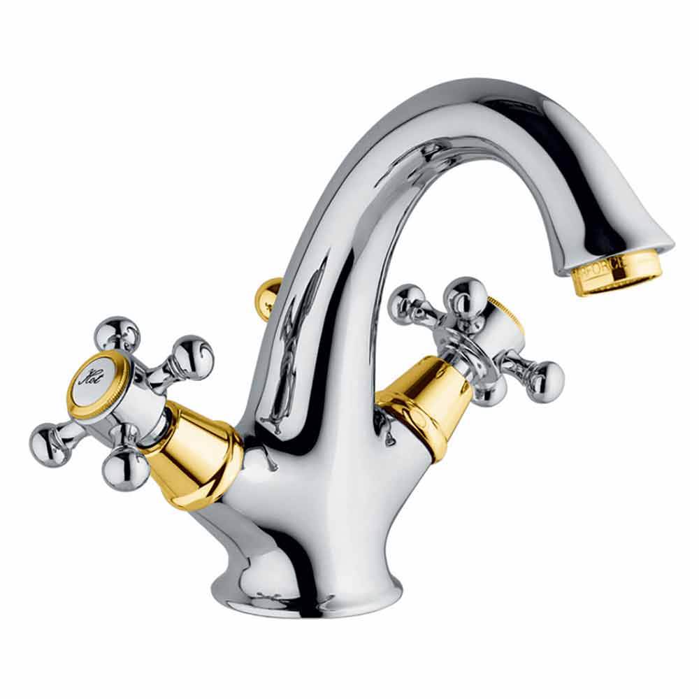 Klasická mosazná jednootvorová baterie pro koupelnové umyvadlo Made in Italy.