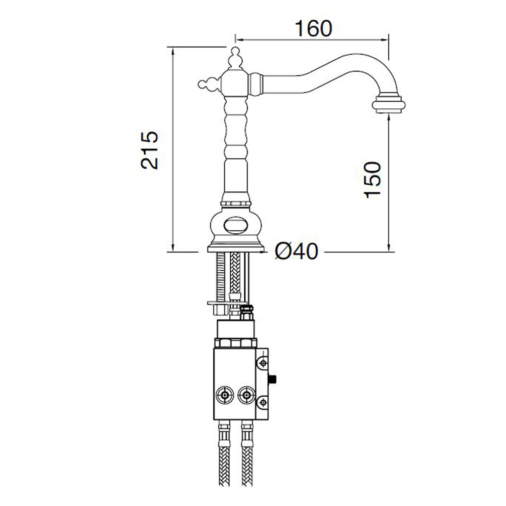 Klasická jednootvorová elektronická dřezová baterie v mosazném provedení, vysoká kvalita; vyrobeno v Itálii.