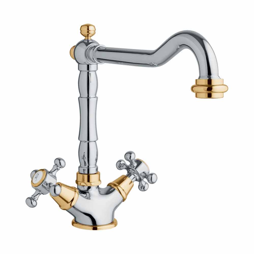 Jednootvorová baterie pro dřez v mosazi, klasický design Vyrobeno v Itálii.