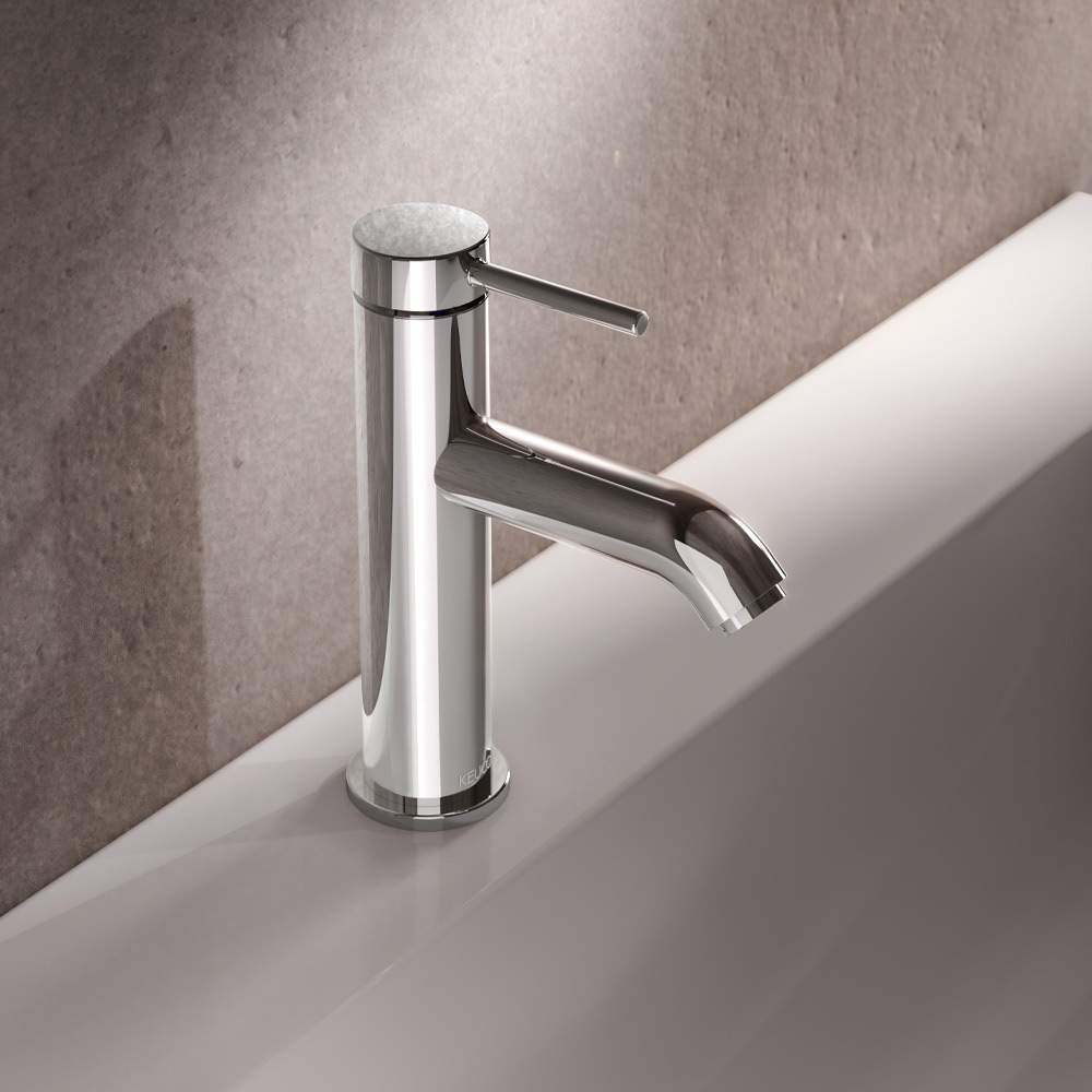jednopáková umyvadlová baterie má design s dokonalou synchronizací mezi rukojetí a výtokem.