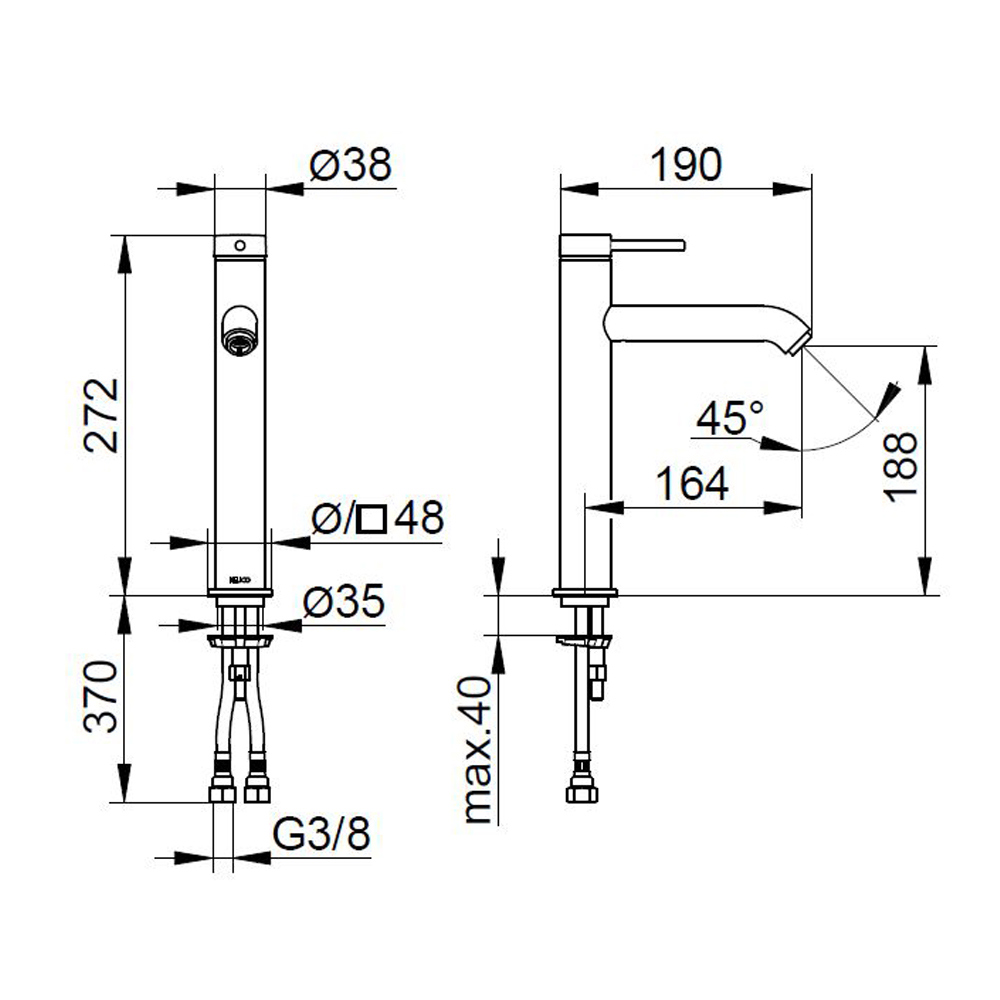 vysoký design s dokonalou synchronizací mezi rukojetí a výtokem.