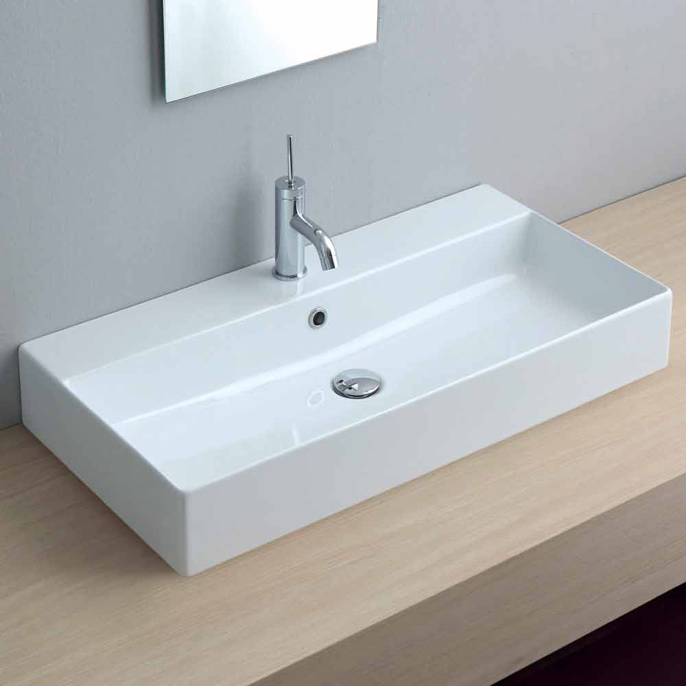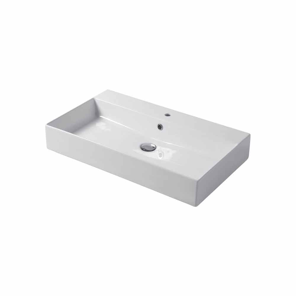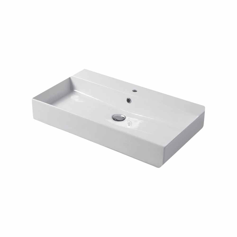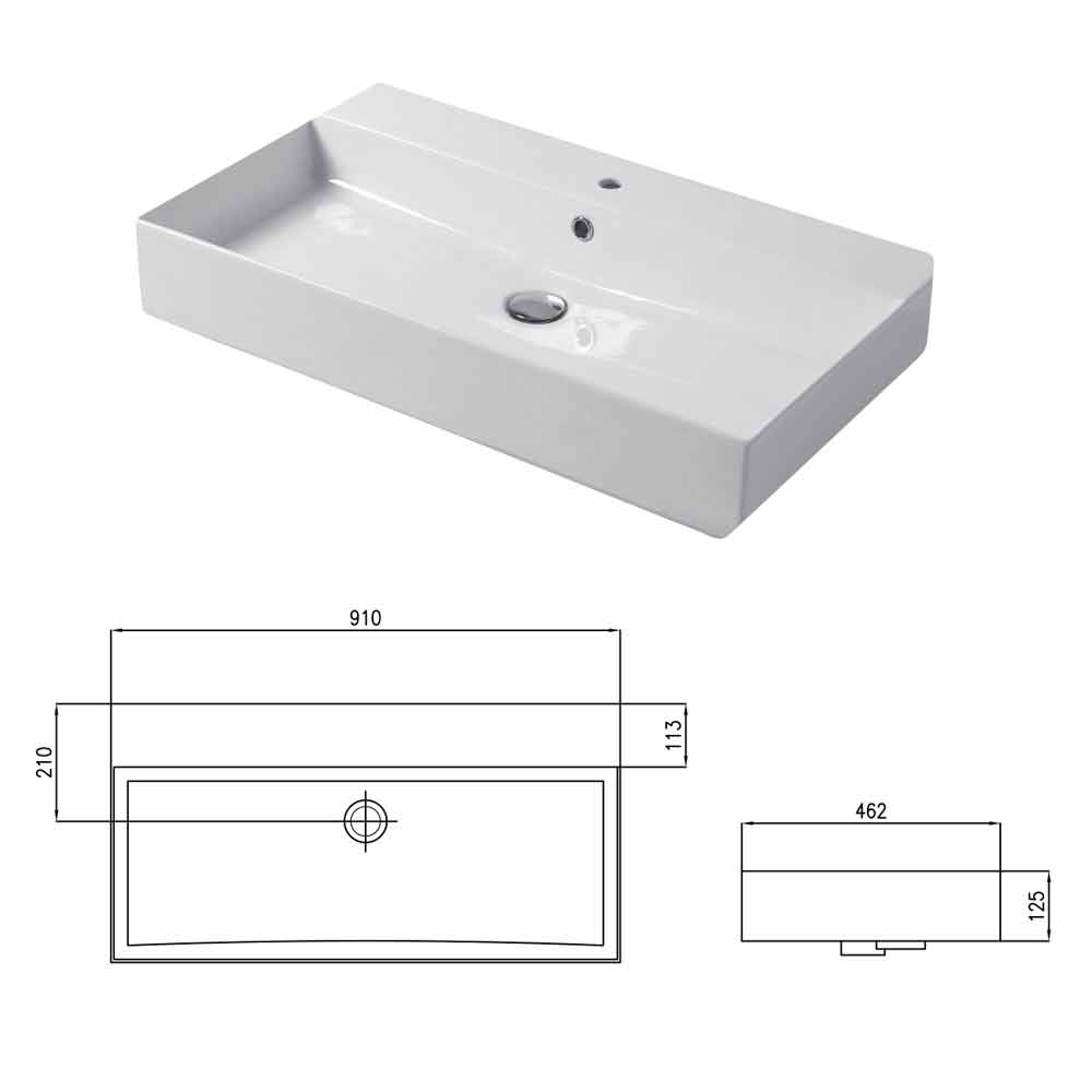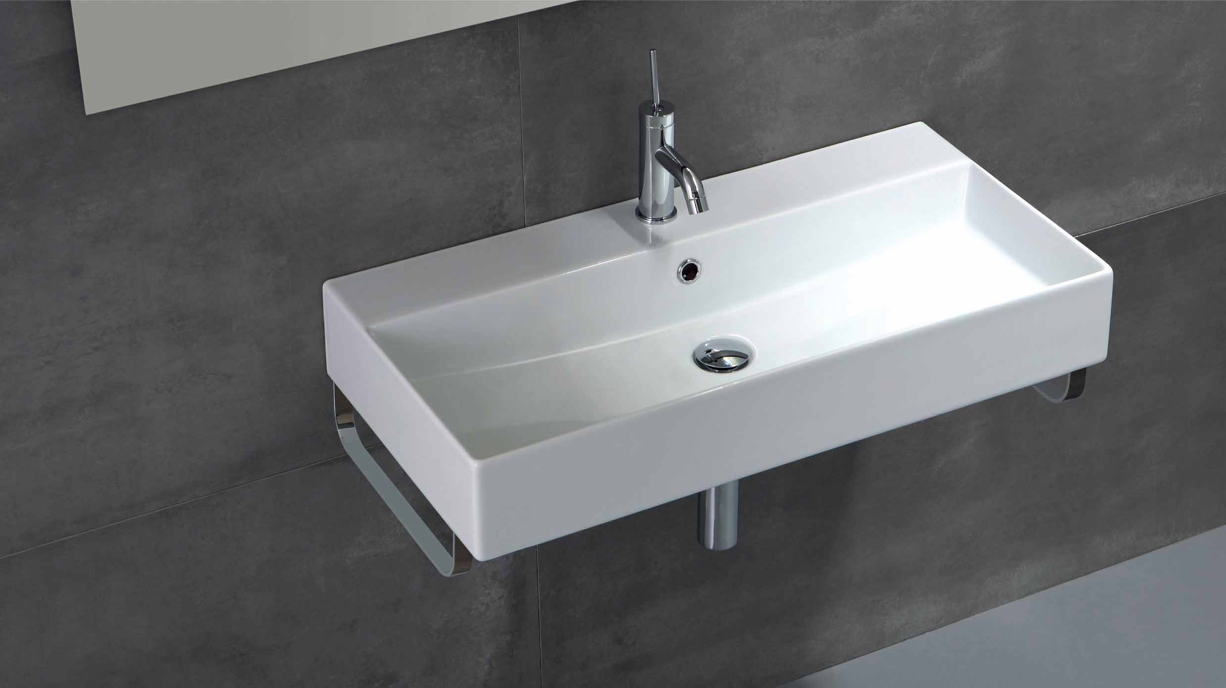 Toto konstrukční umyvadlocentrální otvor pro kohoutek a lze jej namontovat na zeď nebo použít jako dřez na pracovní desku . Je k dispozici v různých rozměrech.
