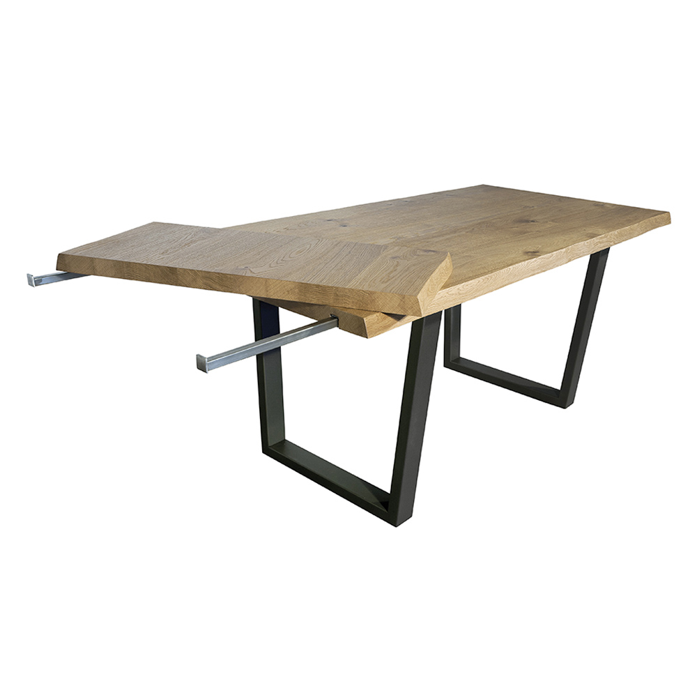 Dřevěný stůl pokovený dýhovaným dubem s vroubkováním a kovovou podnoží Made in Italy.