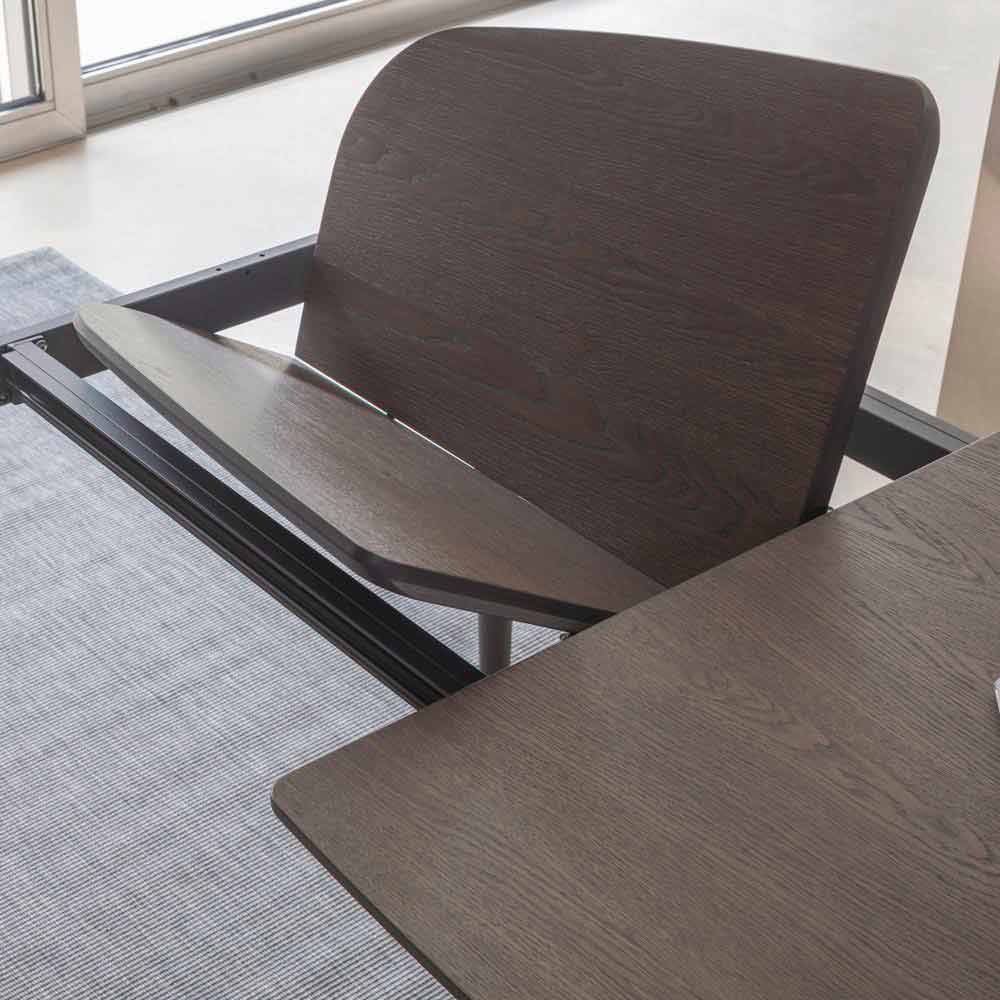 zakřivené a příjemné tvary vytvářejí smyslový zážitek schopný zapojit všechny smysly, a to i díky jemným tónům dřevěných povrchů, se kterými je vyroben.