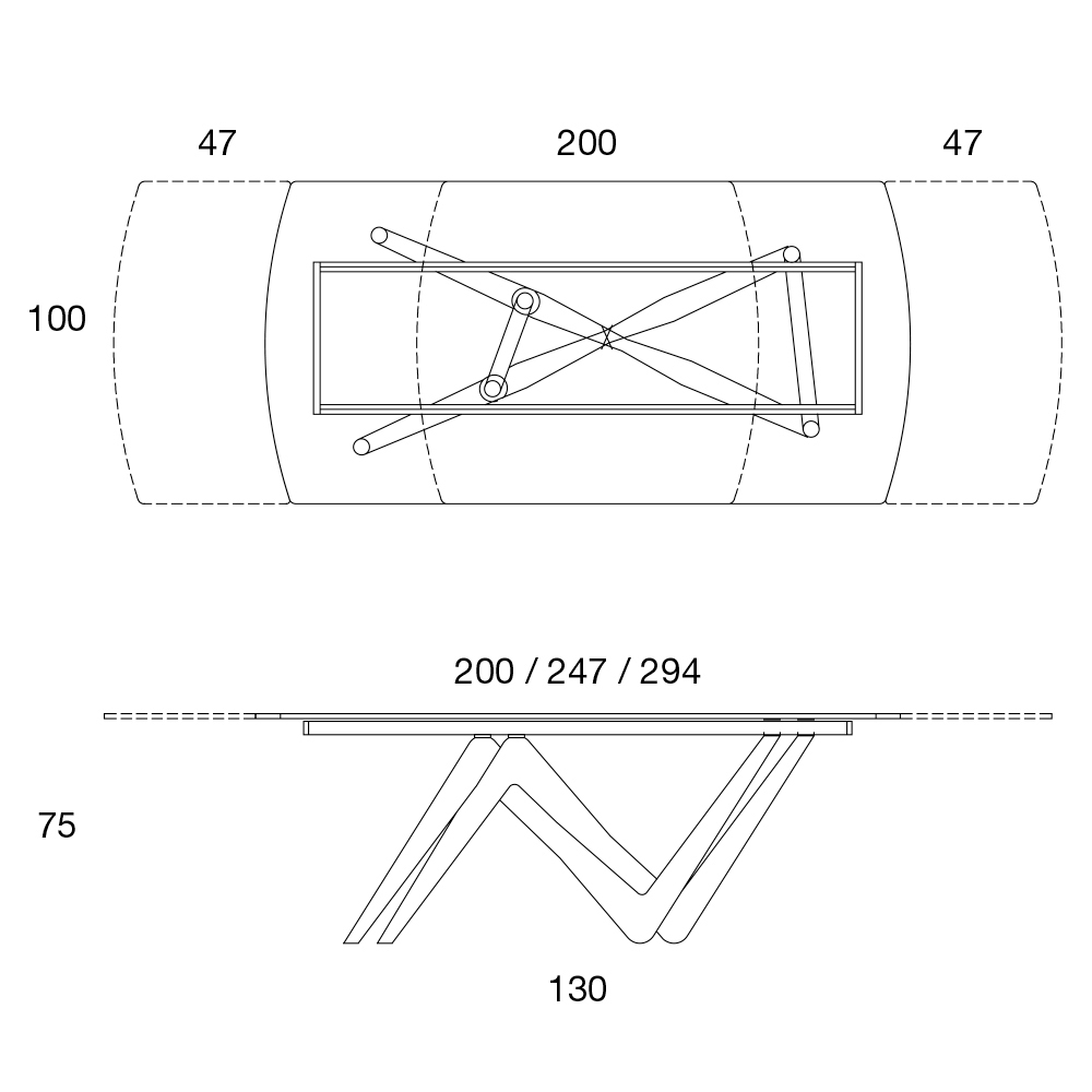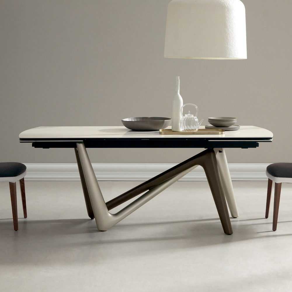 Rozkládací jídelní stůl s keramickými a polyuretanovými nohami vyrobený v Itálii.