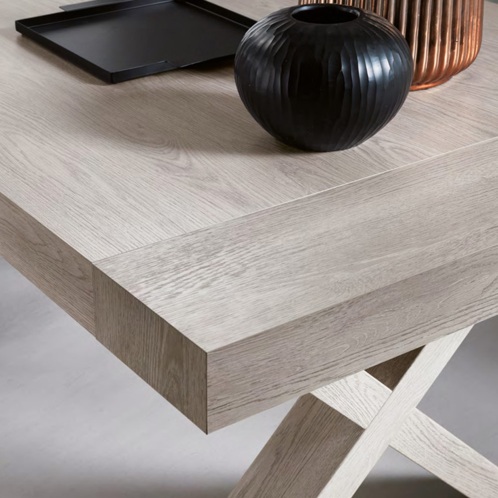 impozantní styl , který si díky svým velkým rozměrům dokáže vydobýt vůdčí roli v místnosti. Jeho estetiku obohacuje a činí jedinečným díky zvláštnímu zkříženému tvaru základny, který dodává výrobku