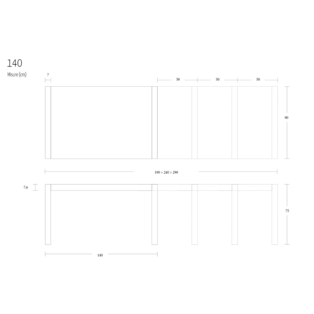 Dostupné velikosti:- L 140/190/240/290 x P 90 x V 75 cm - 3 prodlužovací listy 50 cm;