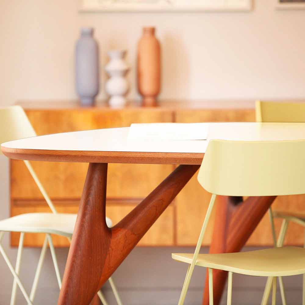 Nadčasová elegance z masivního dřeva je kombinována s moderností HPL, která dává život řešení nábytku v bezkonkurenčním stylu schopném přizpůsobit se jakémukoli prostředí, přináší kreativní a elegantní nádech a stává se skutečným protagonistou interiéru místnosti . Z výběru použití vysoce kvalitních a vysoce kvalitních surovin odborně zpracovaných zkušenými řemeslníky se zrodila revoluční myšlenka na vybavení, která se vyznačuje jemným tvarem plachty horní části a originální vidličkou nohou, která obohacuje design. Tyto zvláštnosti umožňují stolu zprostředkovat pocit lehkosti a současně vytvořit neuvěřitelnou harmonii s okolním nábytkem, a tak dobýt každý prostor.