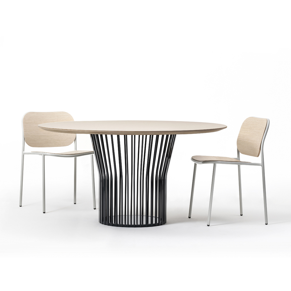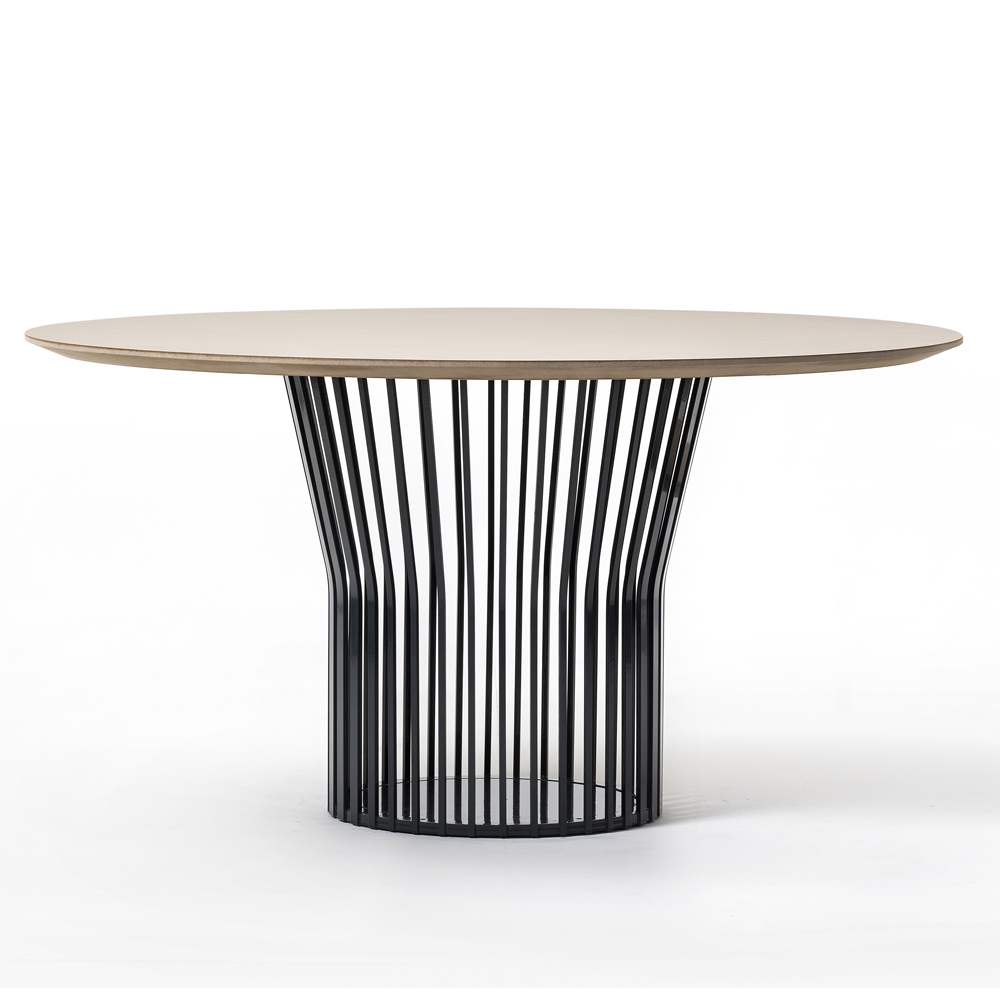 Kulatý jídelní stůl s dřevěnou deskou Made in Italy.