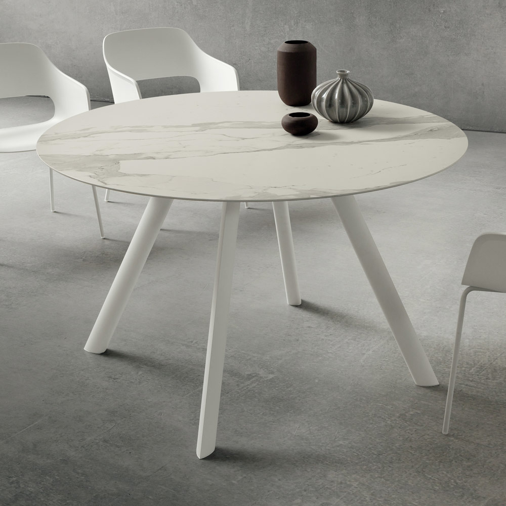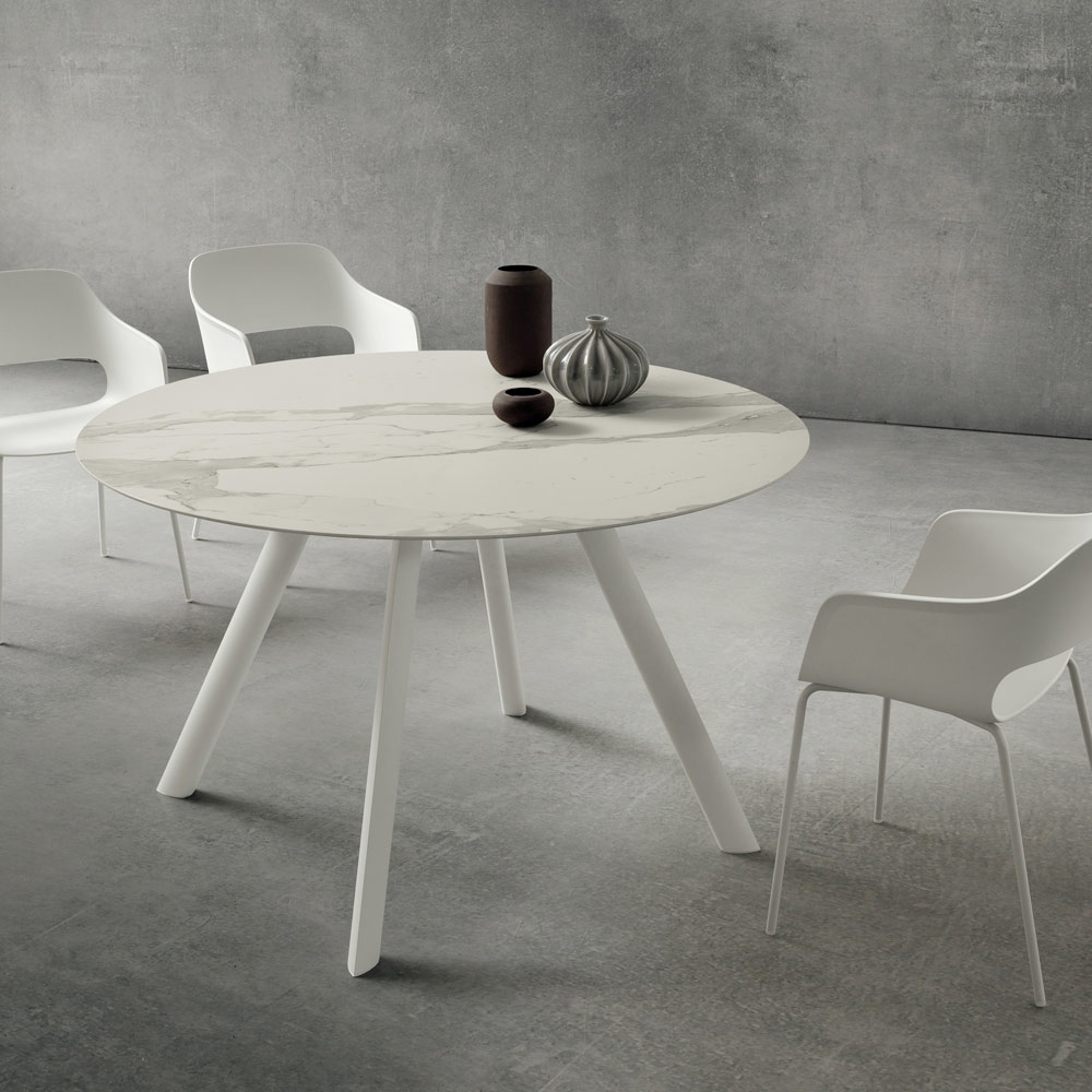 Luxusní jídelní stůl s kulatou lamino keramickou deskou Made in Italy.