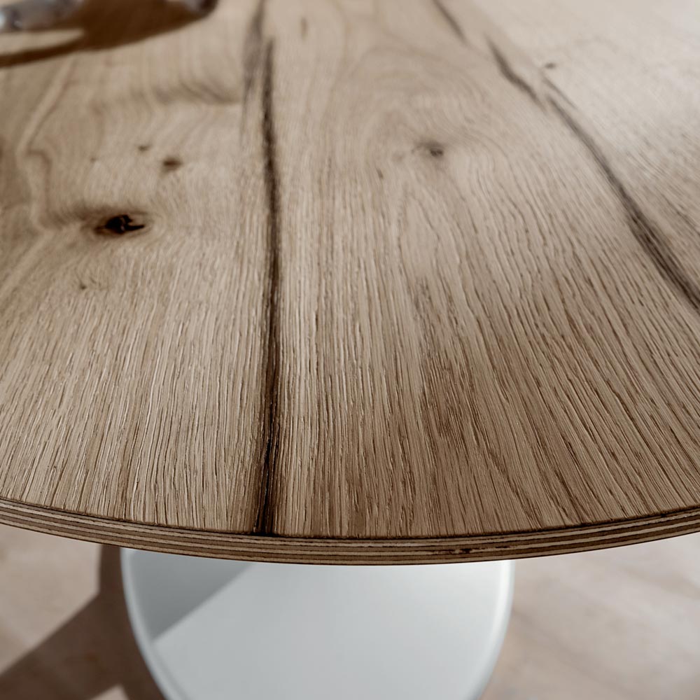 březové překližky s dýhou z letitého dubu s hranami ošetřenými ochranným lněným olejem a podnoží z