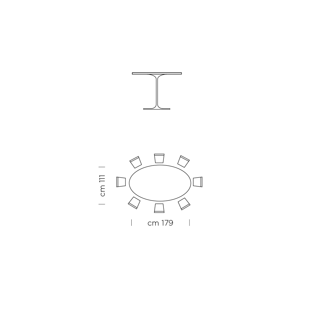 Luxusní jídelní stůl s oválnou dýhovanou deskou a hliníkovou podnoží Made in Italy.