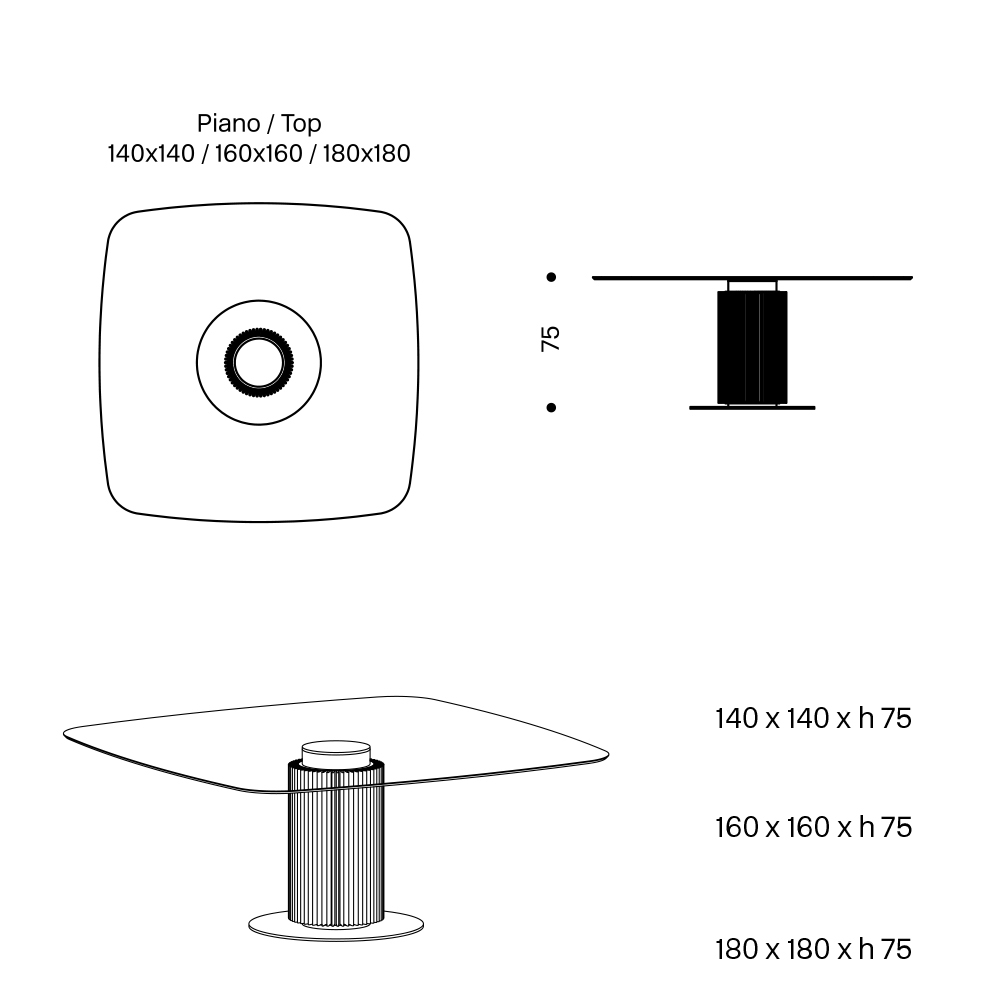 Poznámka : stůl je k dispozici také s kulatou nebo obdélníkovou deskou.