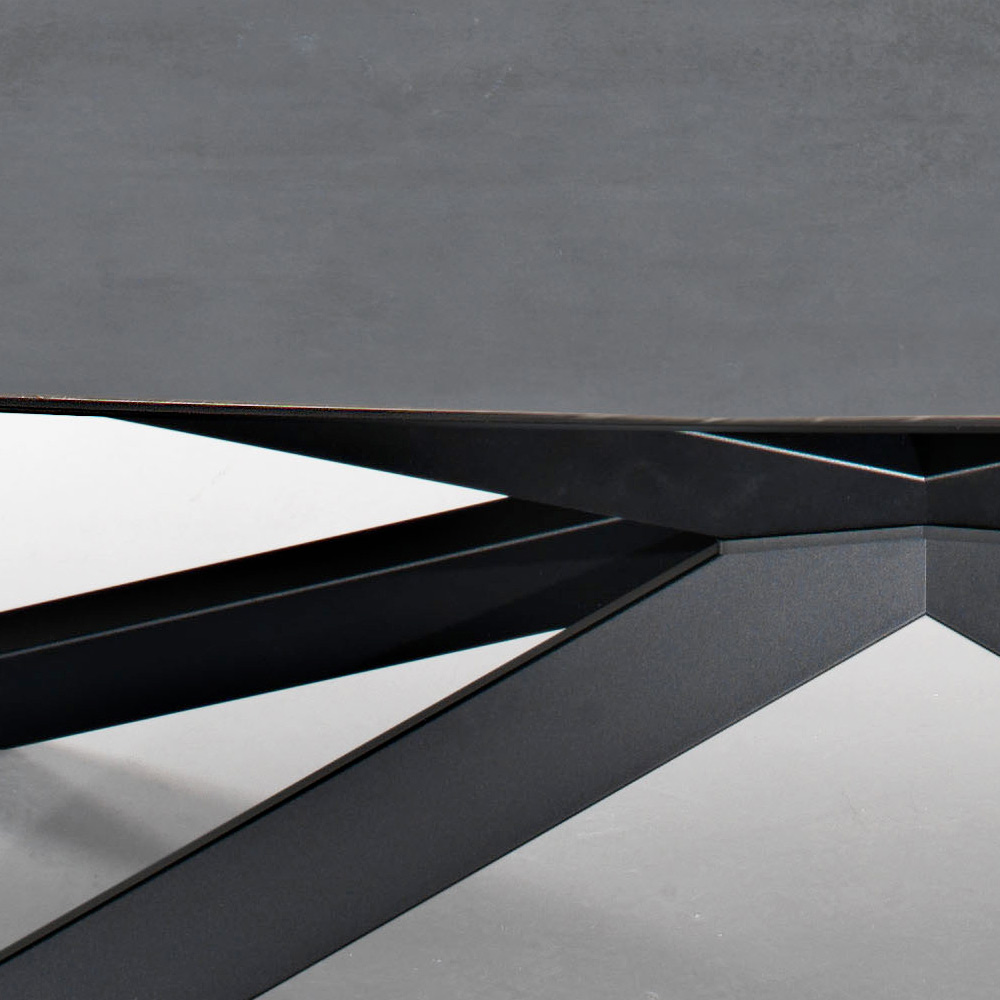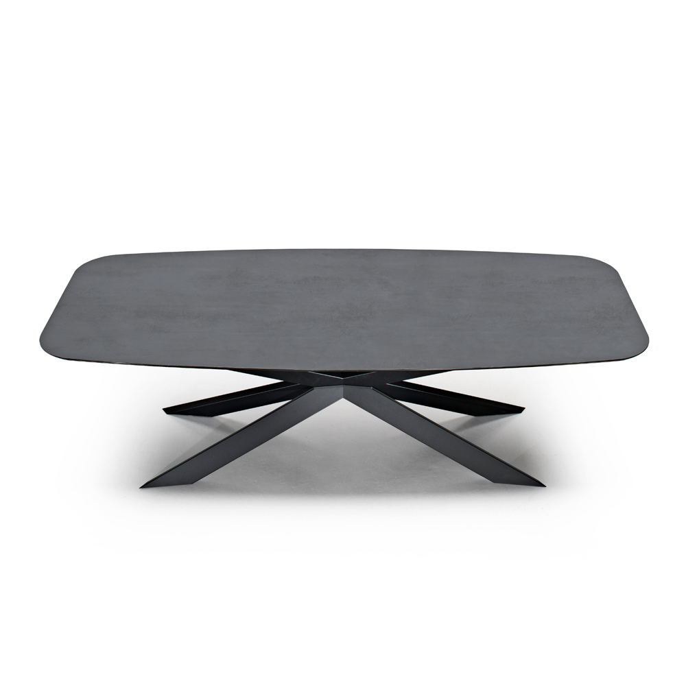 Jídelní stůl s deskou ve tvaru sudu z HPL laminátu s kamenným efektem Made in Italy.