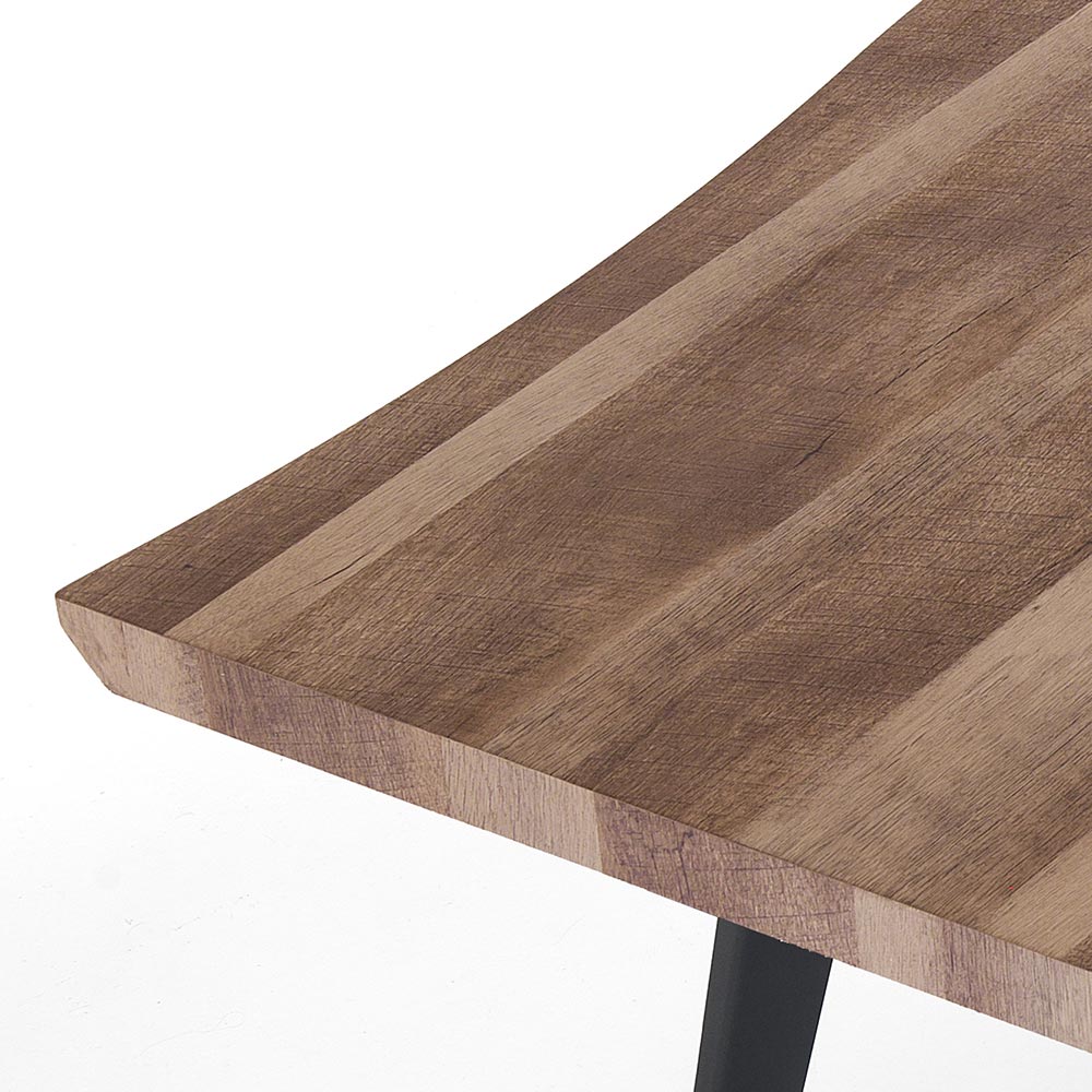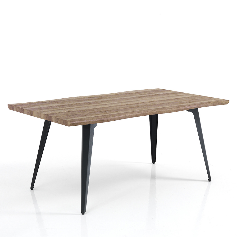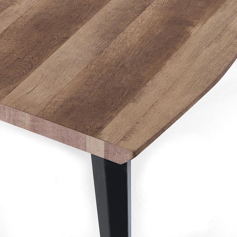 Jídelní stůl s mdf deskou a černými ocelovými nohami.