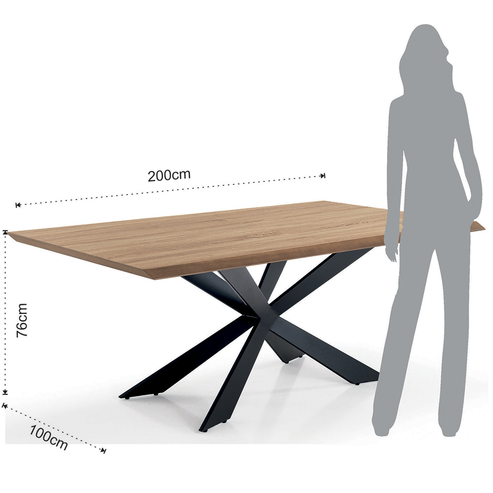 Jídelní stůl s deskou z dýhovaného mdf s dubovým povrchem a podnoží z matně černého lakovaného kovu . Výrobek s lineárním designem obohaceným o zvláštní tvar podnože, který představuje skleněnou silnou stránku stolu. Nádherné zvolené povrchové úpravy dotvářejí konečný vzhled a dodávají nádech elegance a smyslu pro inovaci a zároveň zajišťují pevný, odolný a kvalitní doplněk . Výsledkem je moderní jídelní stůl ideální pro ty, kteří rádi vybavují své domácí prostory osobitostí a charakterem .