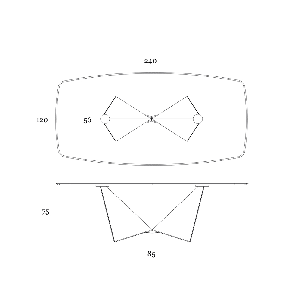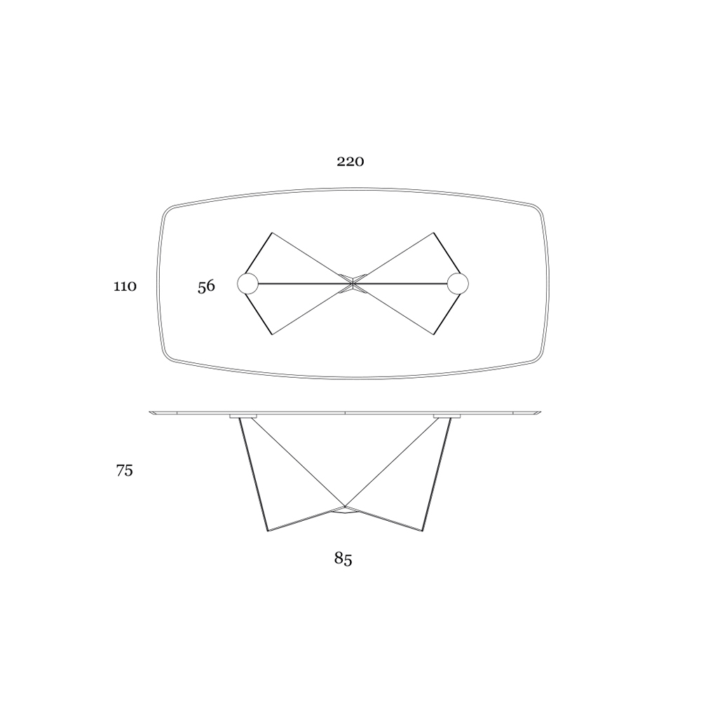 Made in Italy. Vyniká svými neočekávanými tvary a elegantním designem. Má keramickou horní část podepřenou kovovou základnou s práškovým nástřikem. Harmonický design se zakřivenými liniemi na horní straně a dokonalými hranami na základně dává rovnováhu, která obohacuje prostředí o eleganci.