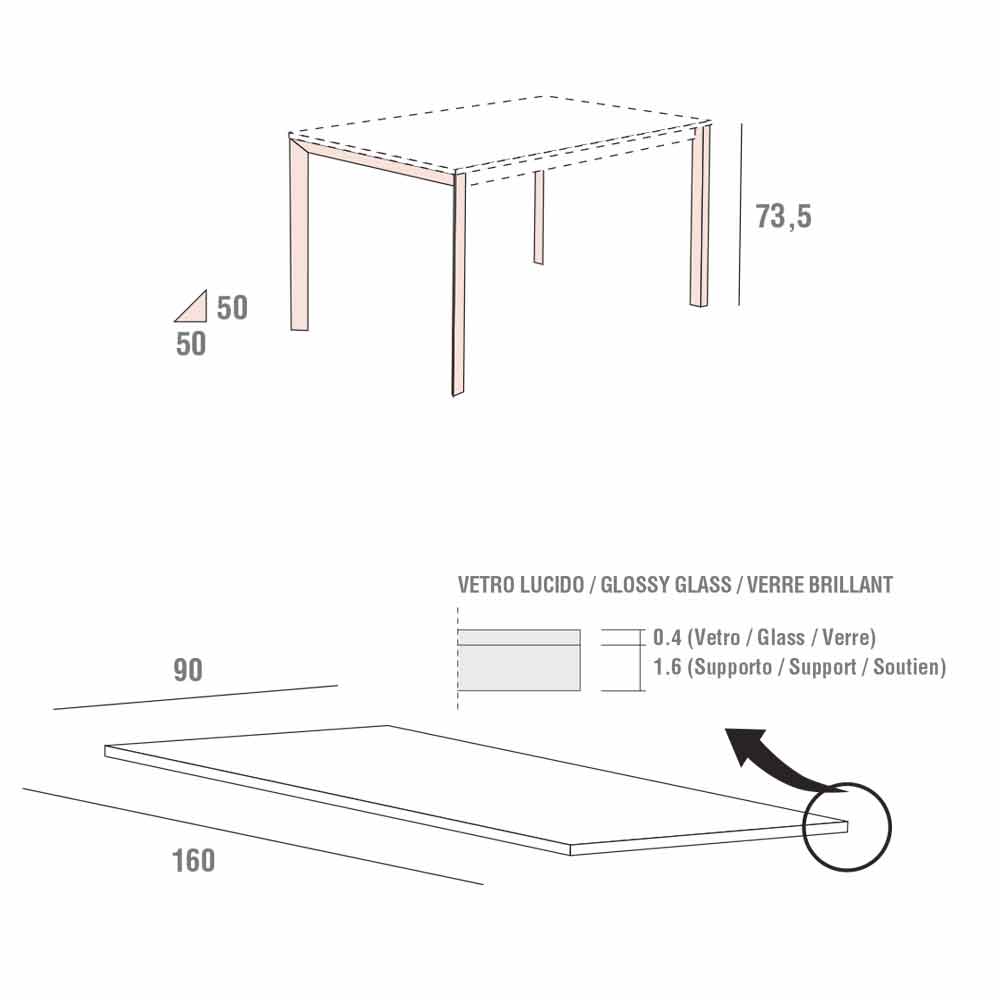 nádech elegance daný sklem a zvláštní lesklá povrchová úprava, která ještě zvyšuje jeho hodnotu. Tento nádherný stůl má také silnou funkční stránku danou použitím