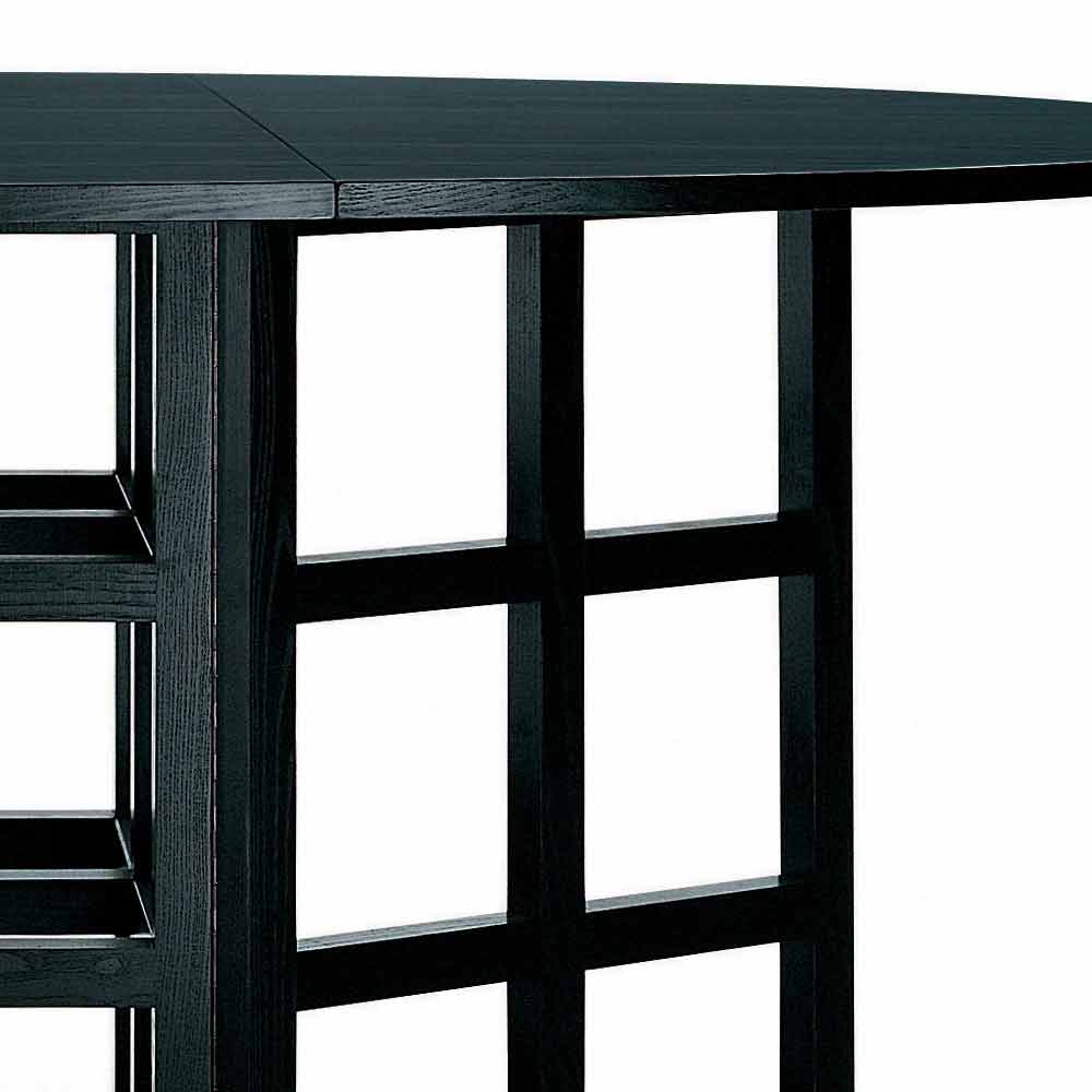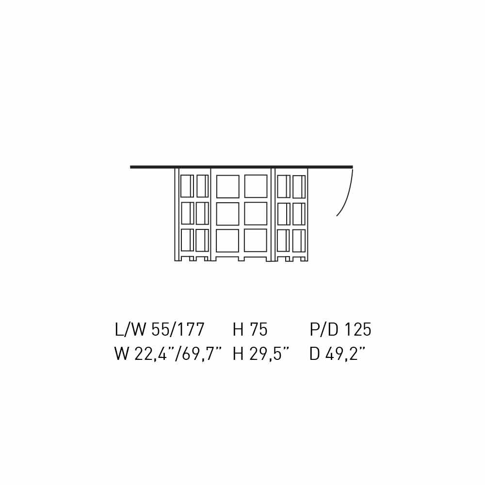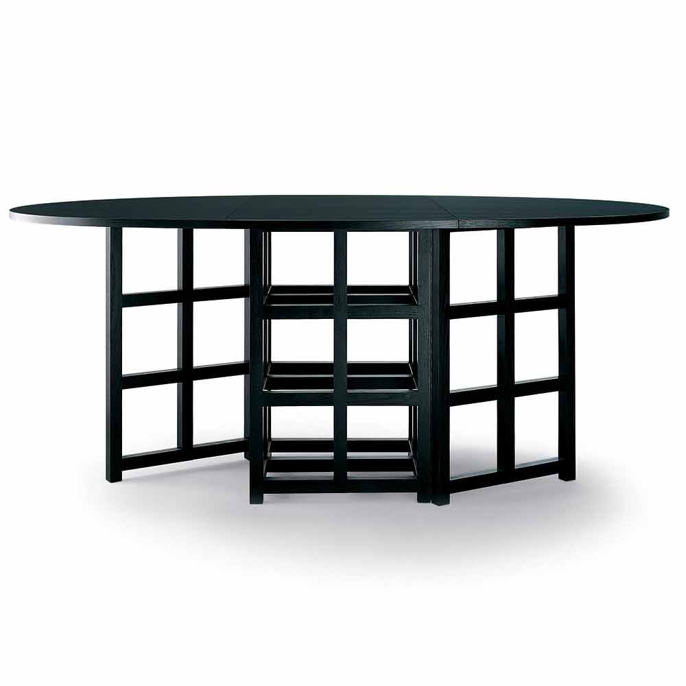 Jídelní stůl vyrobený výhradně v Itálii s deskou a strukturou z černě lakovaného jasanového dřeva. Kus nábytku v originálním stylu, i když v extrémní jednoduchosti. Jeho estetika je charakteristická a jedinečná díky konkrétní základně vytvořené na základě geometrických tvarů a funkcí, které stolu dodávají pocit vytříbenosti a inovace pro exkluzivní výsledek se silným vizuálním působením . Jeho zvláštnost představuje sklopná deska na obou stranách, která vám umožní získat stůl menších rozměrů, což je ideální pro ty, kteří nemají k dispozici velké místnosti, ale v každém případě vyžadují dostatečný povrch pro ubytování přátel a příbuzných pro skvělé obědy a večeře s přáteli.