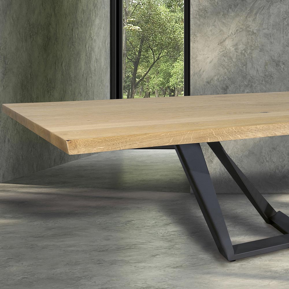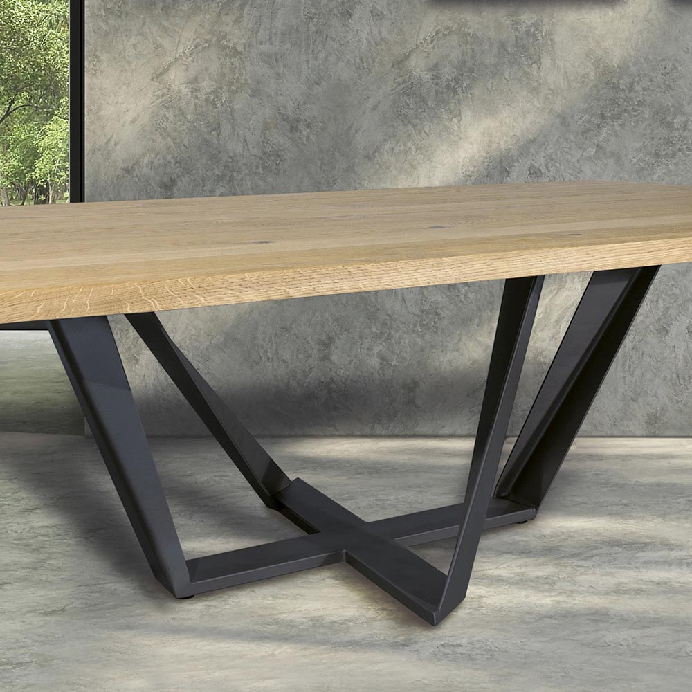 Stůl z dubového dřeva a kovové podnože Vyrobeno v Itálii.
