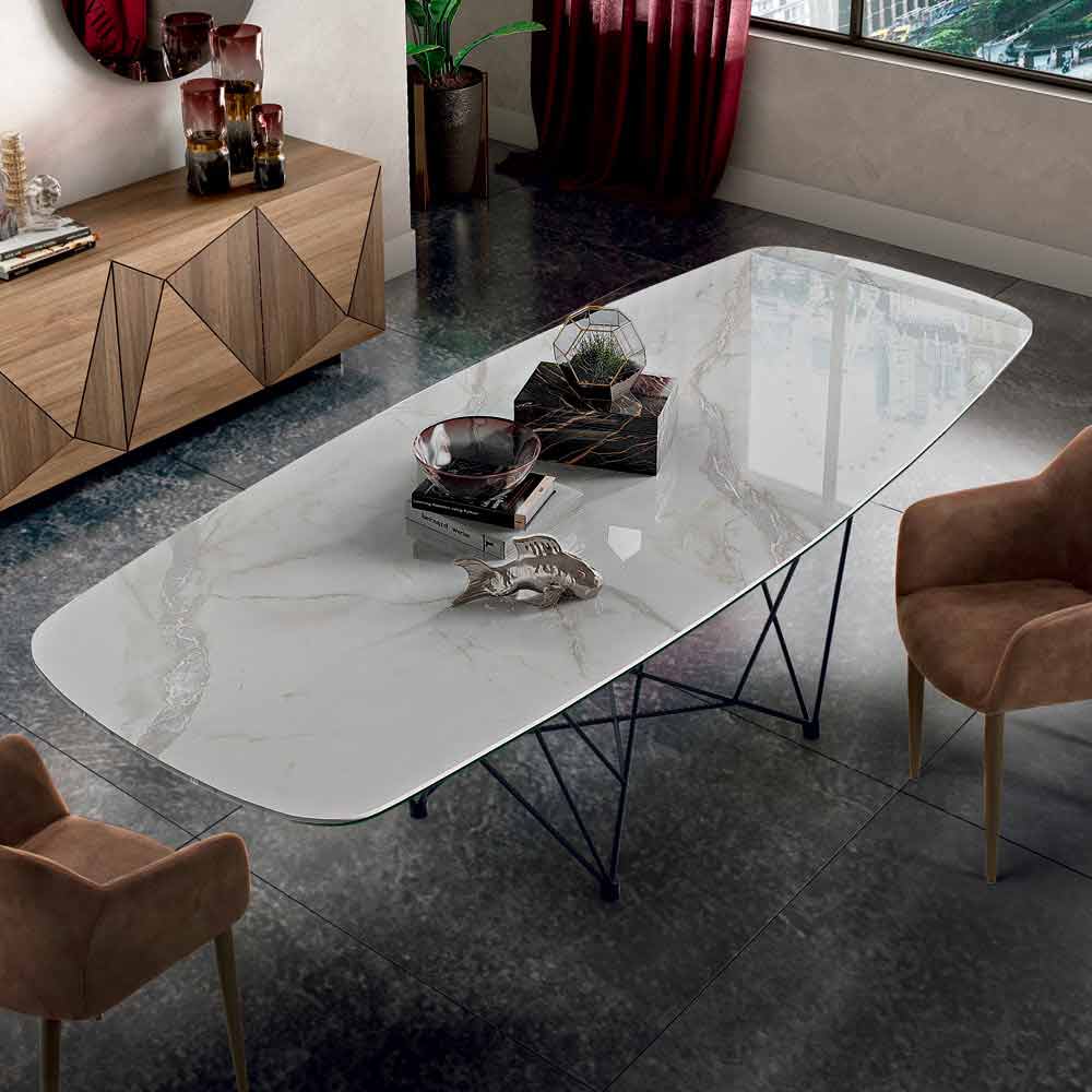 Jídelní stůl vyrobený v Itálii s jemnou keramickou deskou.