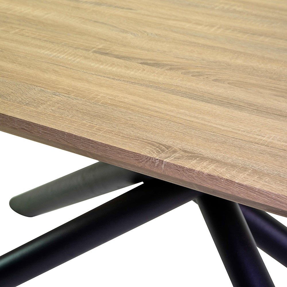 Vrchní deska z MDF s povrchovou úpravou s imitací přírodního dřeva dodává nábytku teplo a charakter a vytváří harmonický vizuální kontrast s tmavým kovem. Hladký a prostorný povrch nabízí ideální prostor pro uvítání rodiny a hostů a dokonale se hodí do jakéhokoli prostředí, od jídelny přes moderní obývací pokoj až po neformální prostory, jako jsou restaurace nebo kanceláře.