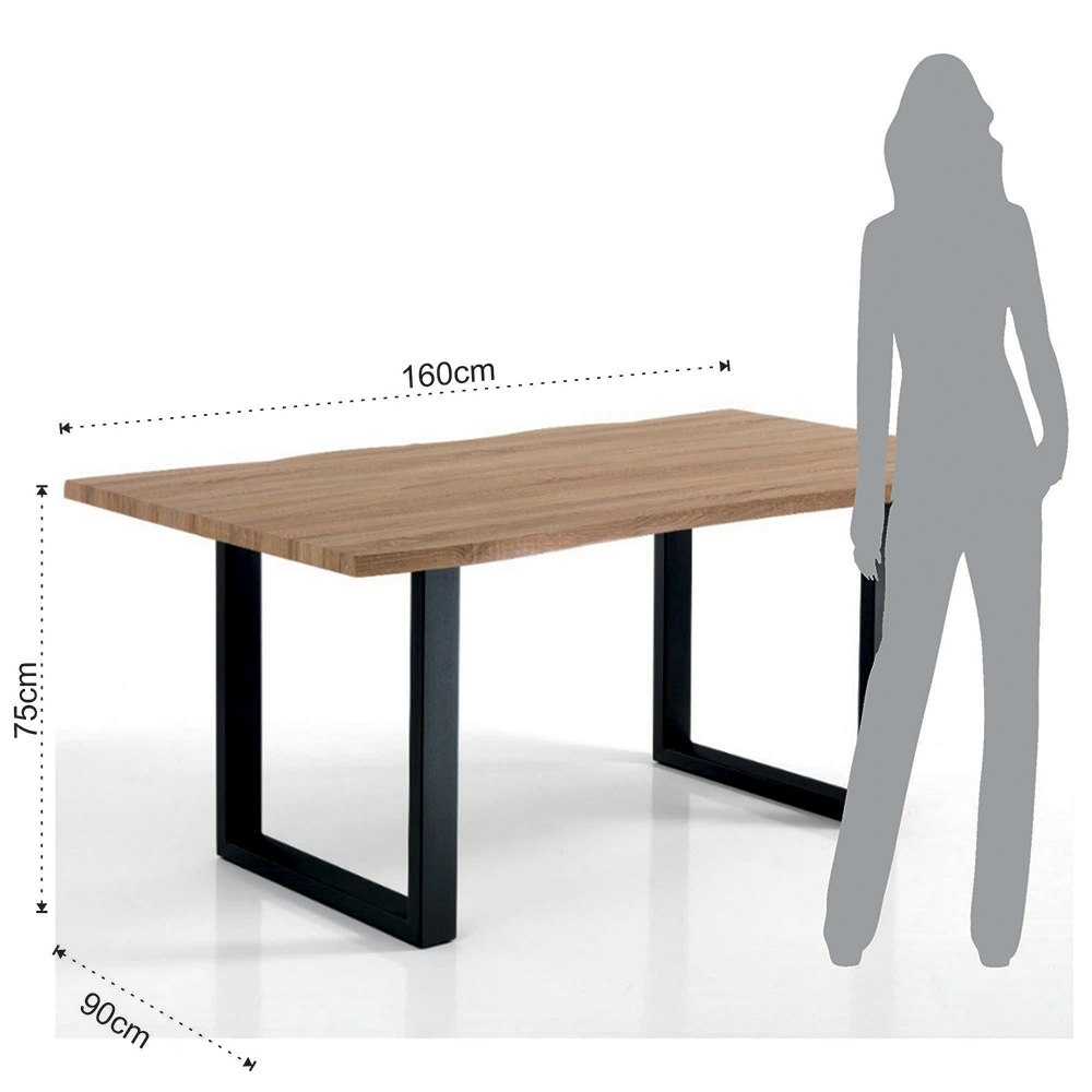 Jídelní stůl v dubovém provedení mdf s černými ocelovými nohami.