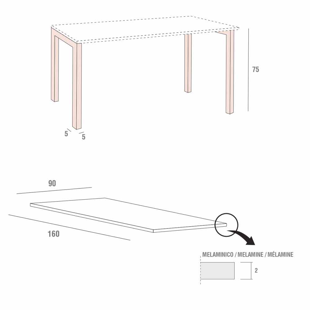 Melaminový jídelní stůl s bíle lakovanou kovovou konstrukcí Made in Italy.