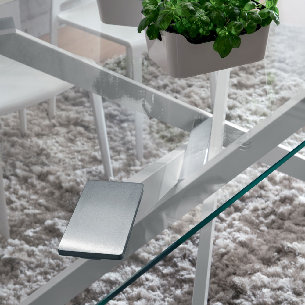 Jídelní stůl s deskou z průhledného skla italské výroby, luxus.