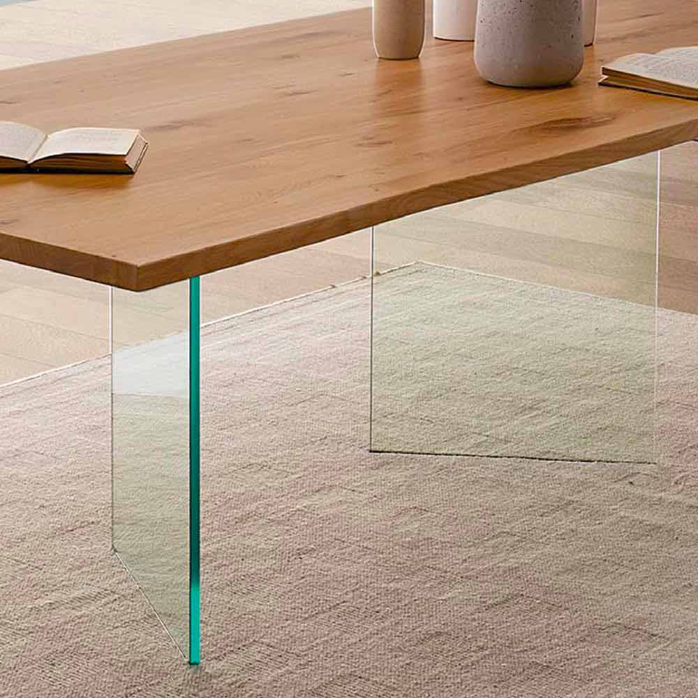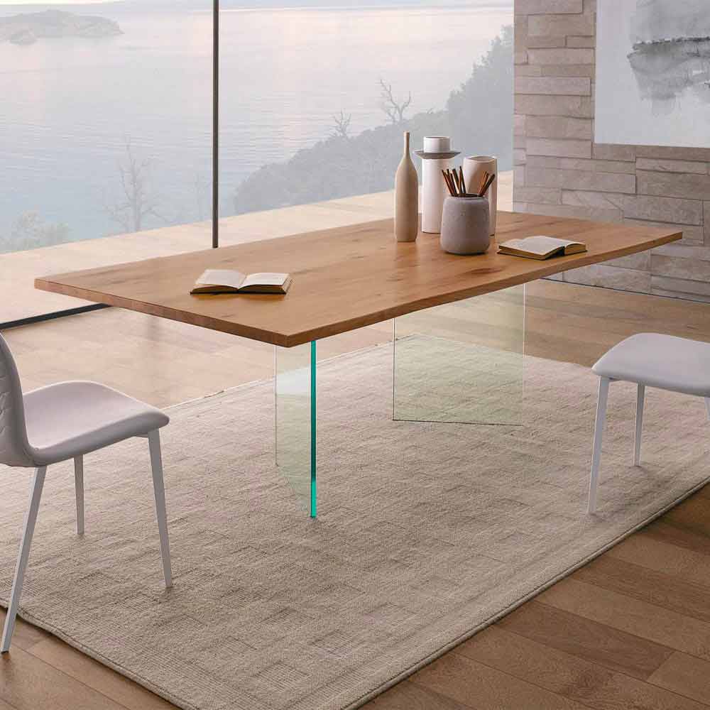 Moderní stůl do jídelny vyrobený ze skla a dřeva, vysoce kvalitní produkt Made in Italy.
