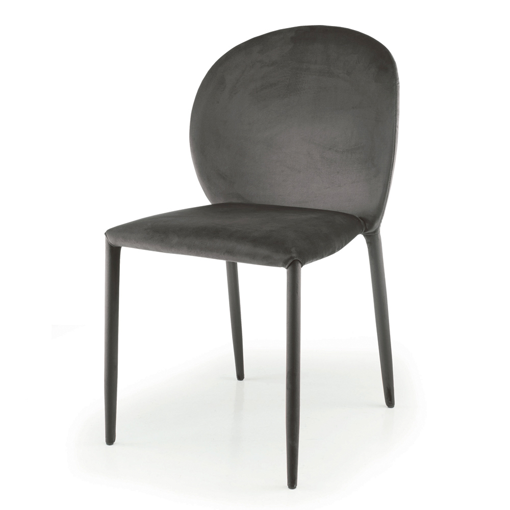 zaobleným opěradlem , které nabízí pocit teplého a měkkého objetí, ideální pro zajištění optimálního pohodlí při obědech a večeřích s přáteli. Elegance sametu také dodává židli veškerou její