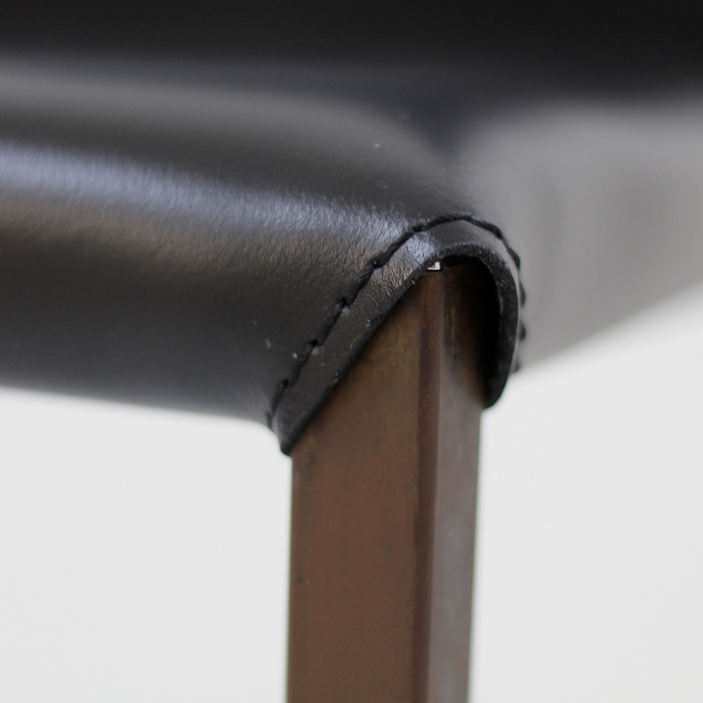 vyrobená v Itálii se strukturou Corten a černým koženým sedákem, ideální do domácnosti a vhodná na zakázku. Tato nábytková sada je perfektním nápadem pro všechny, kteří chtějí dodat místnosti osobitý a moderní nádech, aniž by se vzdali
