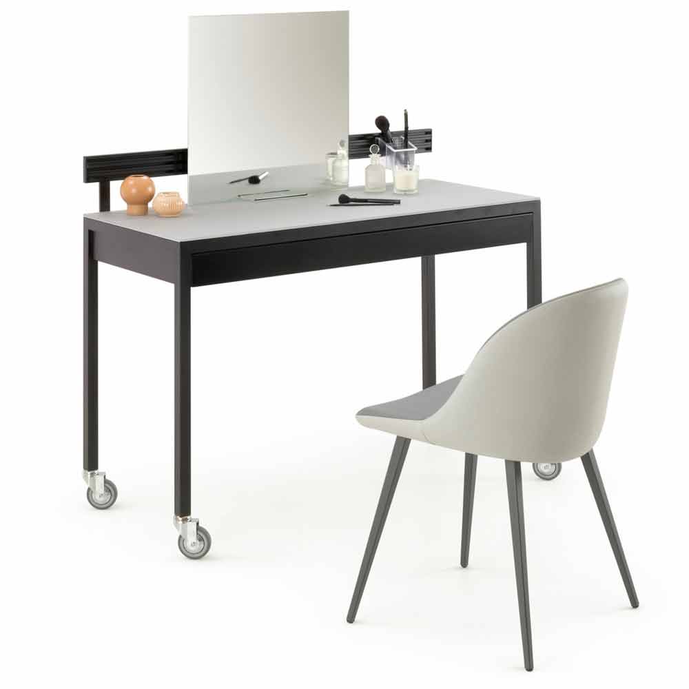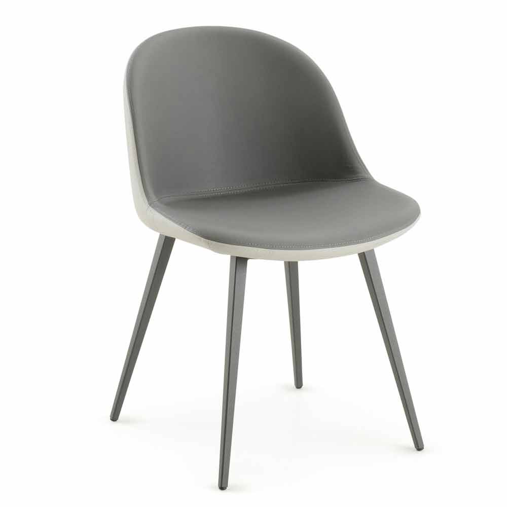 Elegantní židle do jídelny nebo kuchyně vyrobená v Itálii se skořápkou potaženou stříbrem a antracitovou ekokožou a strukturou z grafitově lakovaného kovu.