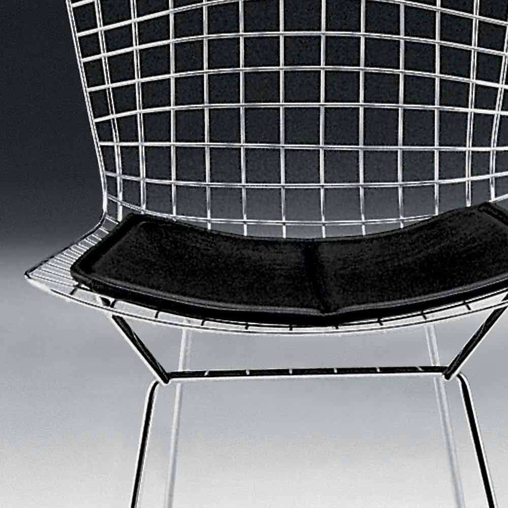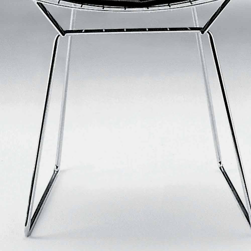 chromovaným ocelovým rámem a polstrovaným sedadlem potaženým kůží.