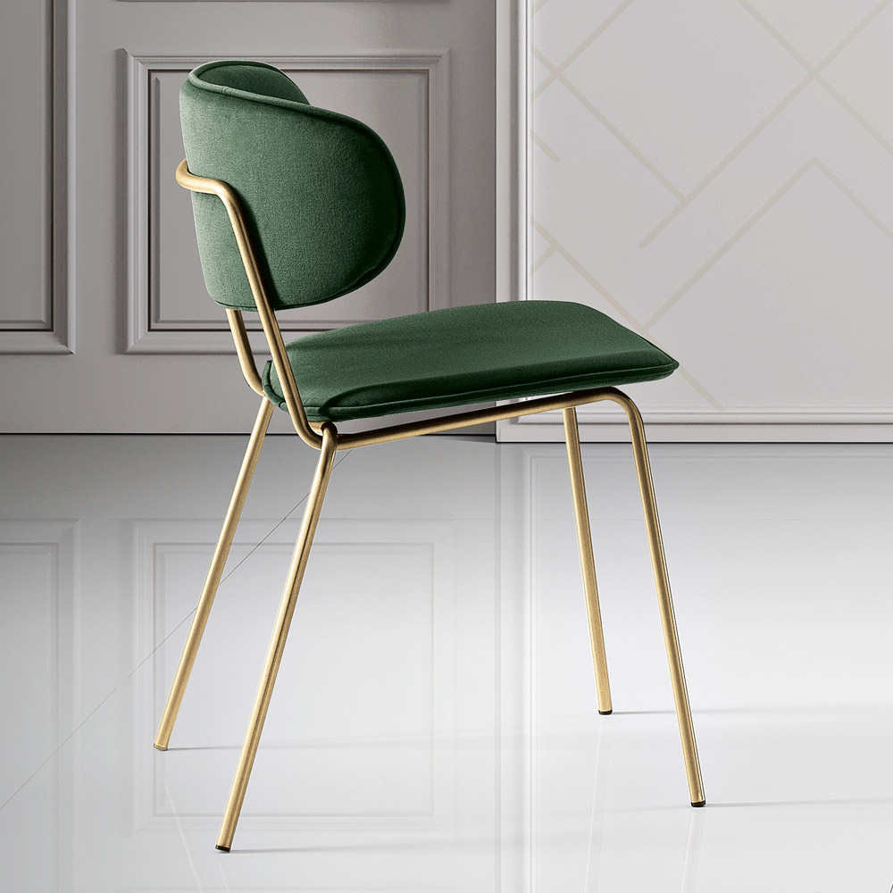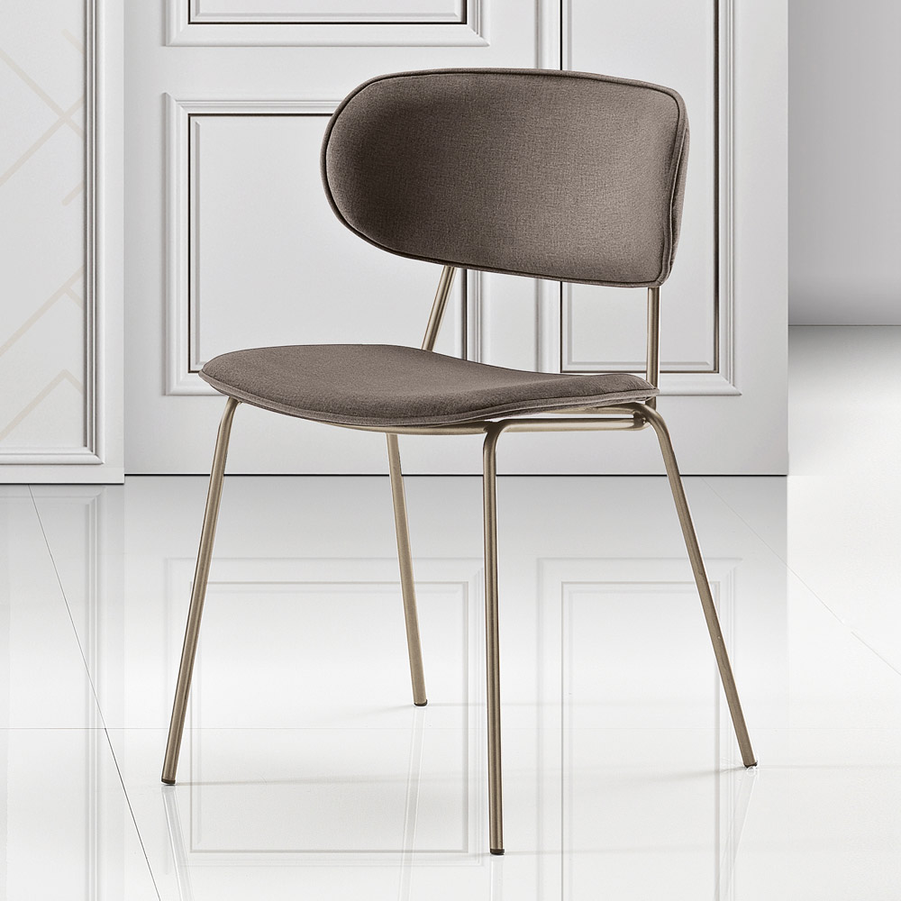 Tato židle je designový klenot, ideální pro ty, kteří chtějí spojit funkčnost a styl. Sedák a zakřivené opěradlo jsou potaženy látkou, která nabízí pohodlné a elegantní sezení. Jednoduchou, ale sofistikovanou siluetu židle zvýrazňují kovové nohy , které dodávají nádech moderního tepla a pocit vizuální lehkosti.