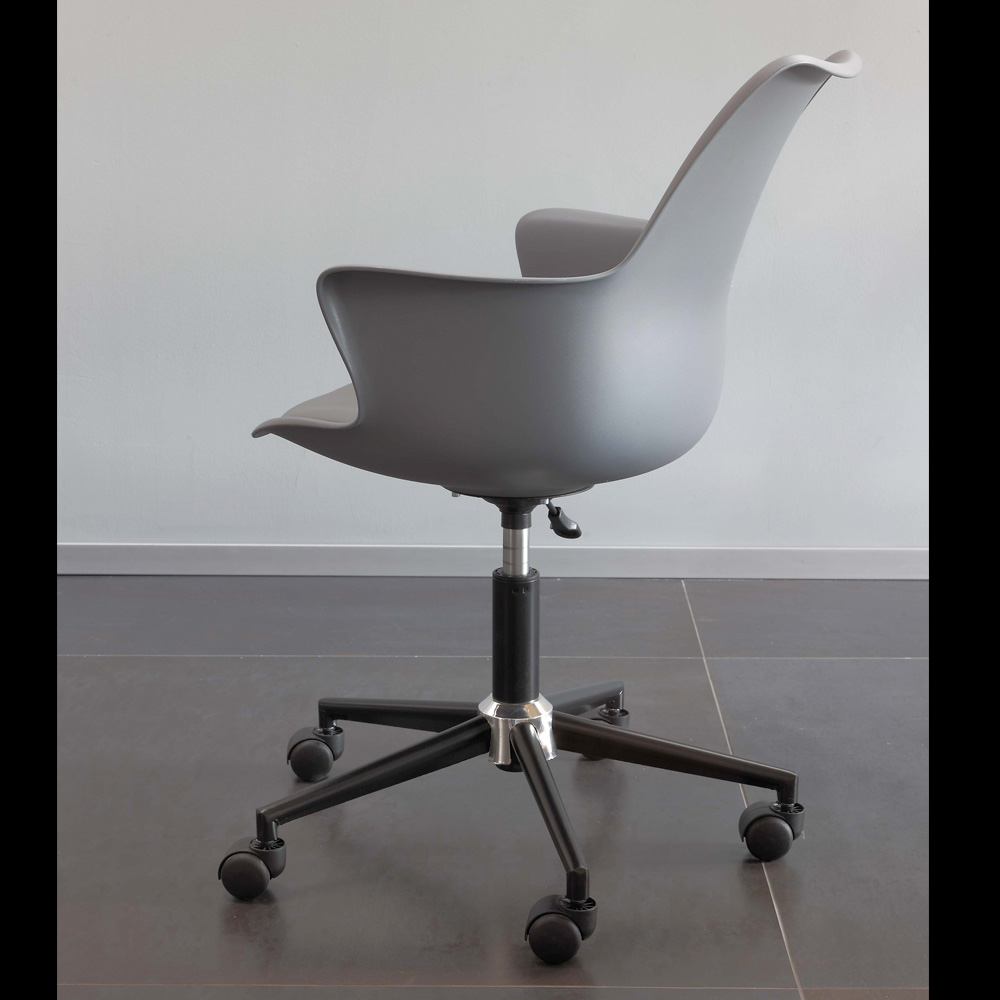 polypropylenu. Měkké a obklopující linie charakterizují sedák této židle, jehož cílem je poskytnout pohodlí a pohodlí. Díky možnosti nastavení výšky a otočným kolečkům je možné ji přizpůsobit tak, aby lépe vyhovovala různým potřebám člověka a stala se tak pohodlnou a funkční židlí pro každého.