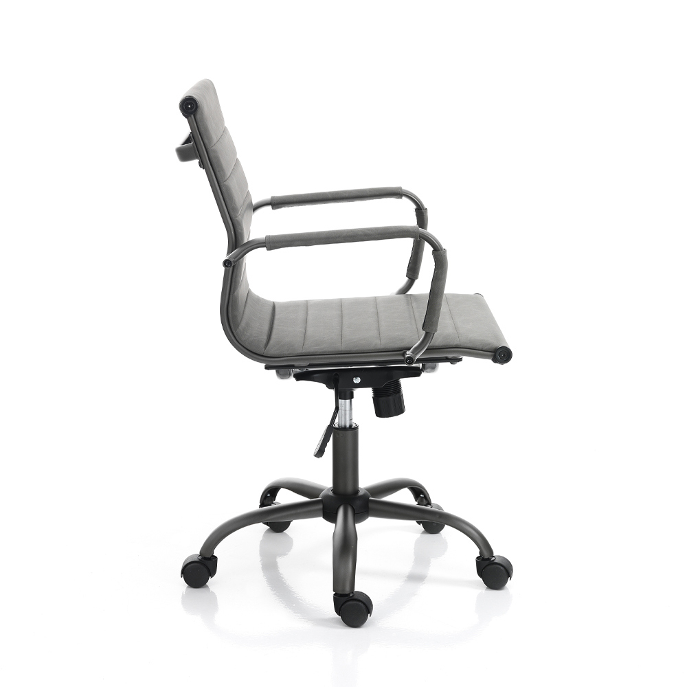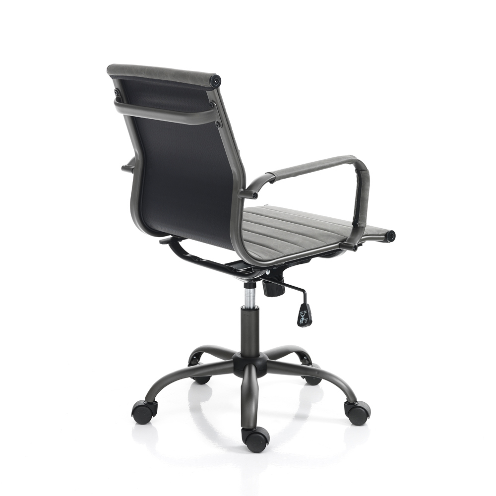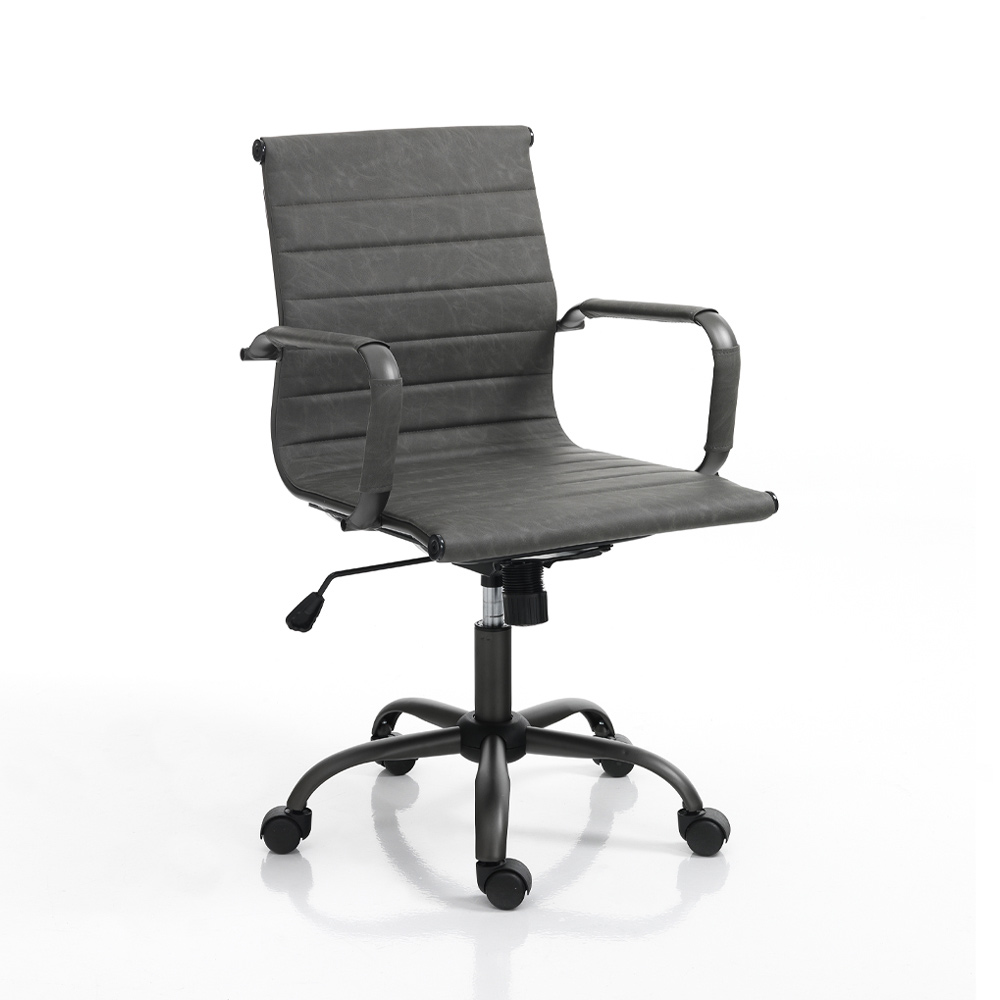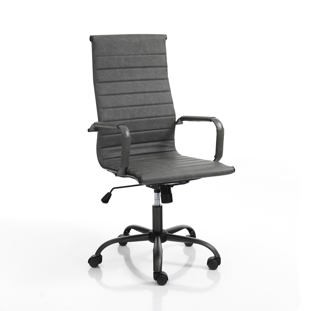 šedou syntetickou kůží s efektem stáří , konstrukcí a hvězdicovou základnou z