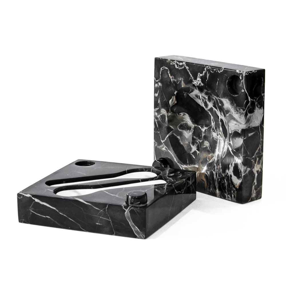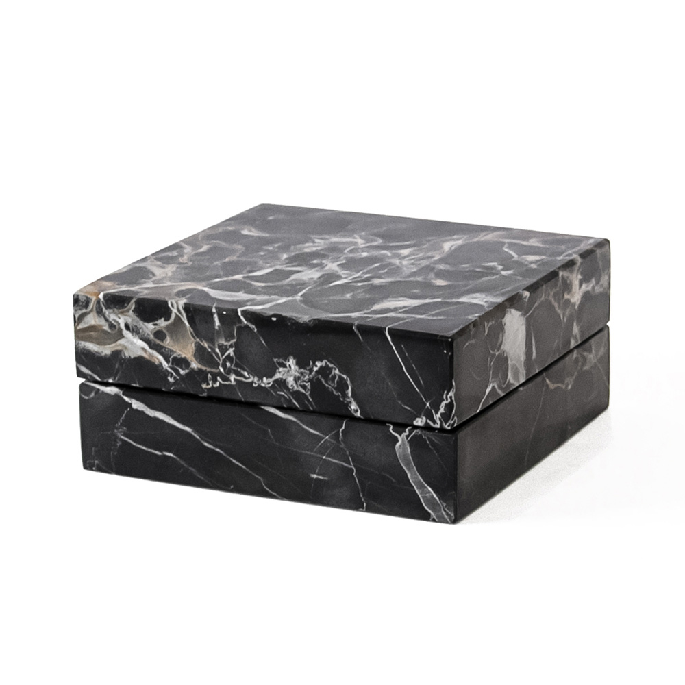 Tato kaviárová krabička se vyznačuje svým čtvercovým tvarem a vysokou elegancí a rafinovaností, která uvolňuje materiál, ze kterého je vyrobena: černý portorský mramor.