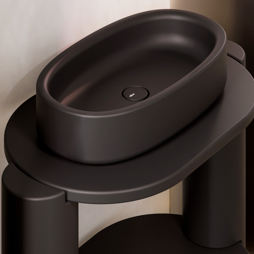 Doplněk nábytku, který kombinuje moderní linie a jemné geometrie , určený pro ty, kteří hledají elegantní, praktickou a nevšední koupelnu.