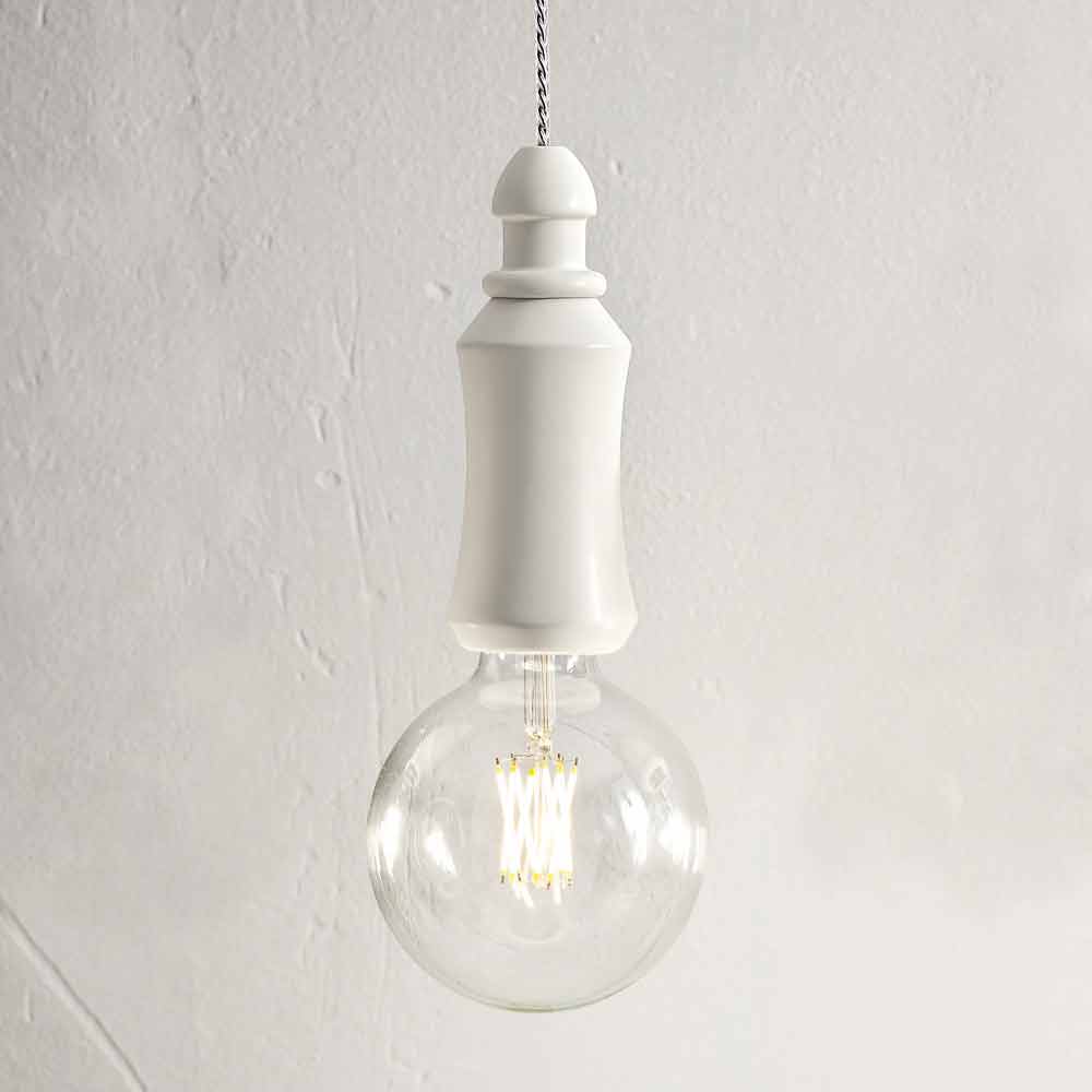 Obě povrchové úpravy jsou k dispozici v lesklé nebo matné verzi. Elektrický kabel je vyroben z oceli a je potažen průhledným silikonovým pláštěm. Žárovka je dodávána bez žárovky, ale je vhodná pro dekorativní žárovky na trhu.
