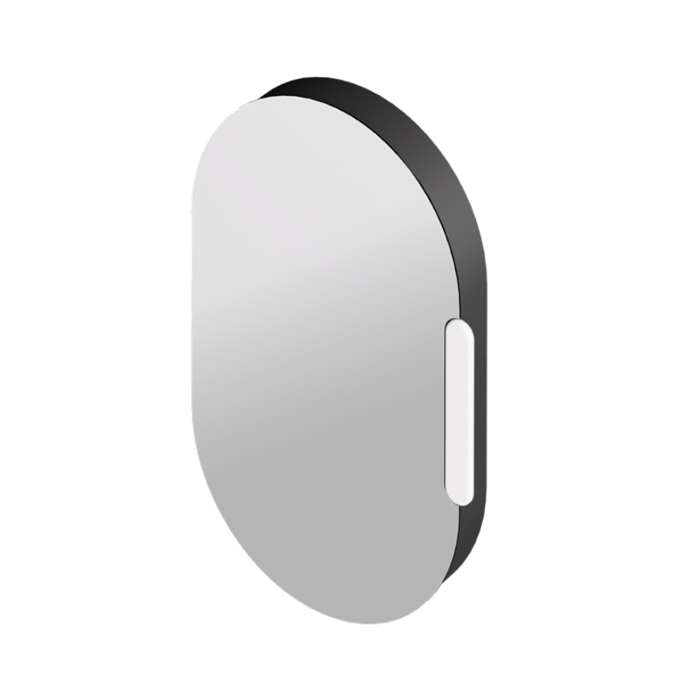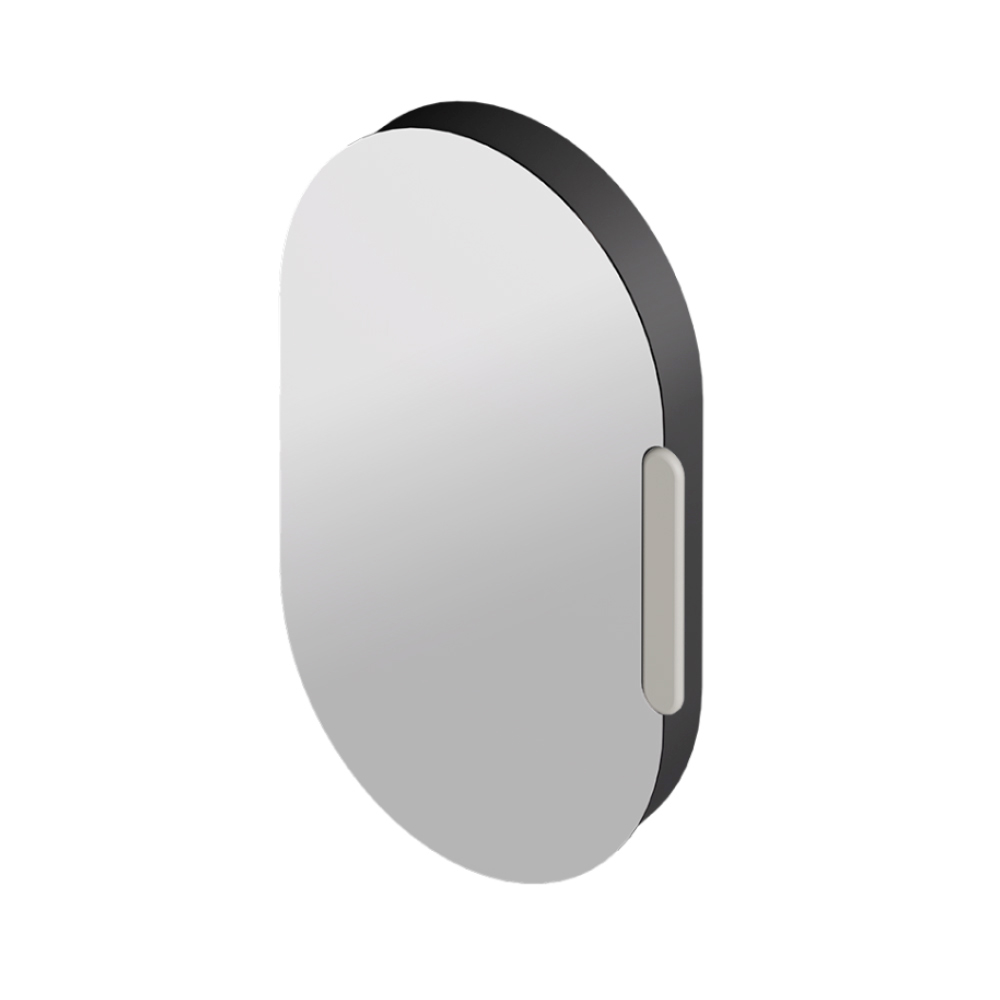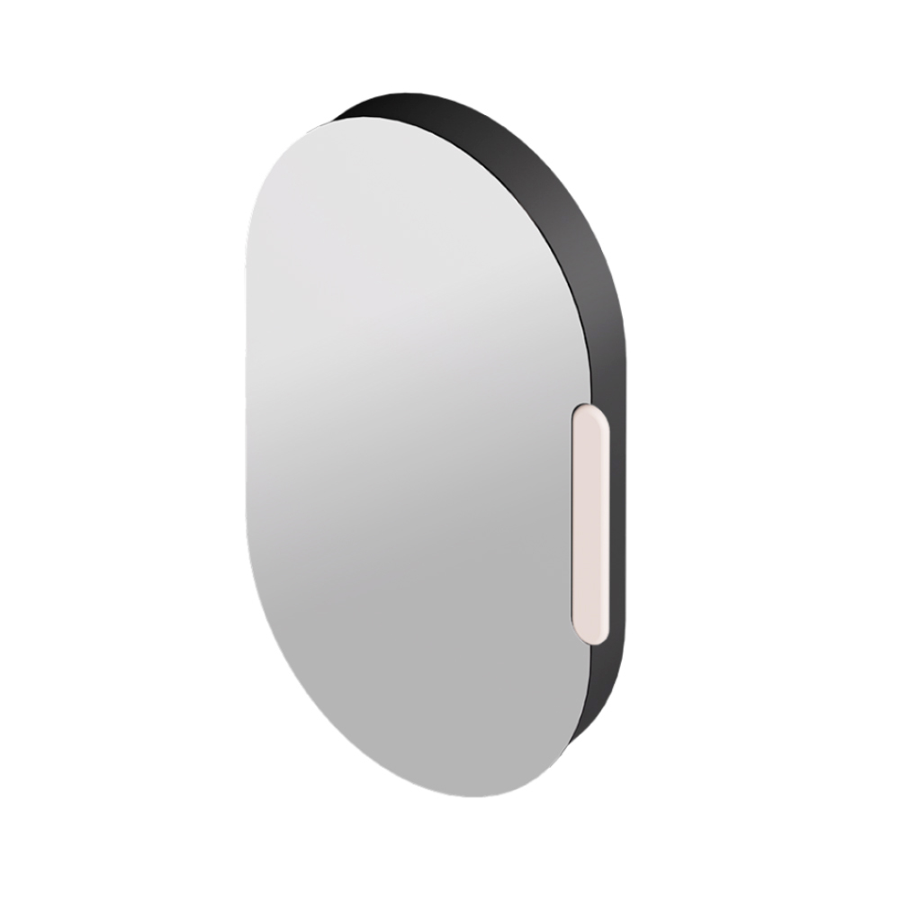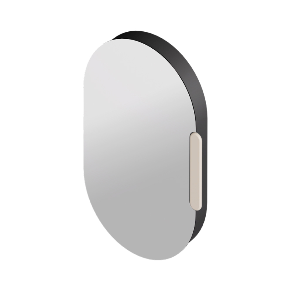 Toto oválné zrcadlo s keramickým rámem není jen dekorativním prvkem, ale také chytrou schránkou : za reflexní plochou se nacházejí praktické otevřené přihrádky, ideální pro elegantní uspořádání drobných předmětů denní potřeby.
