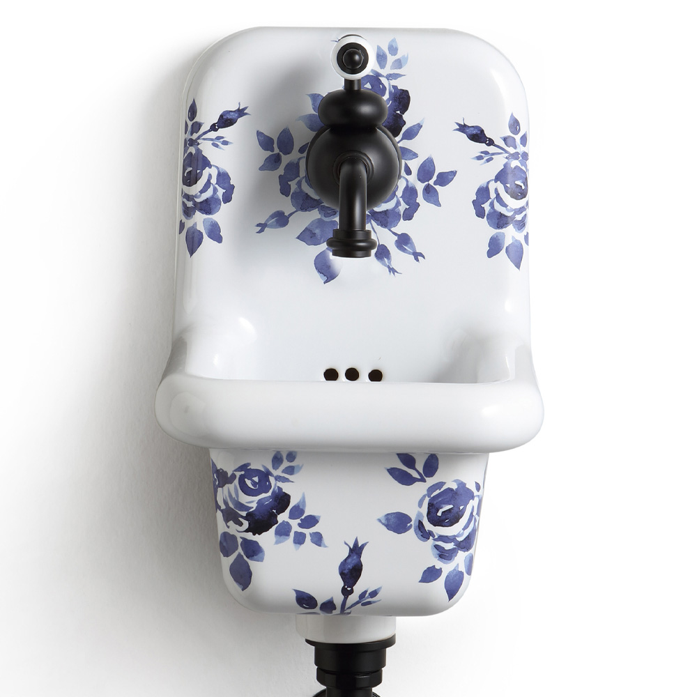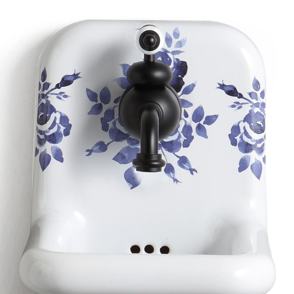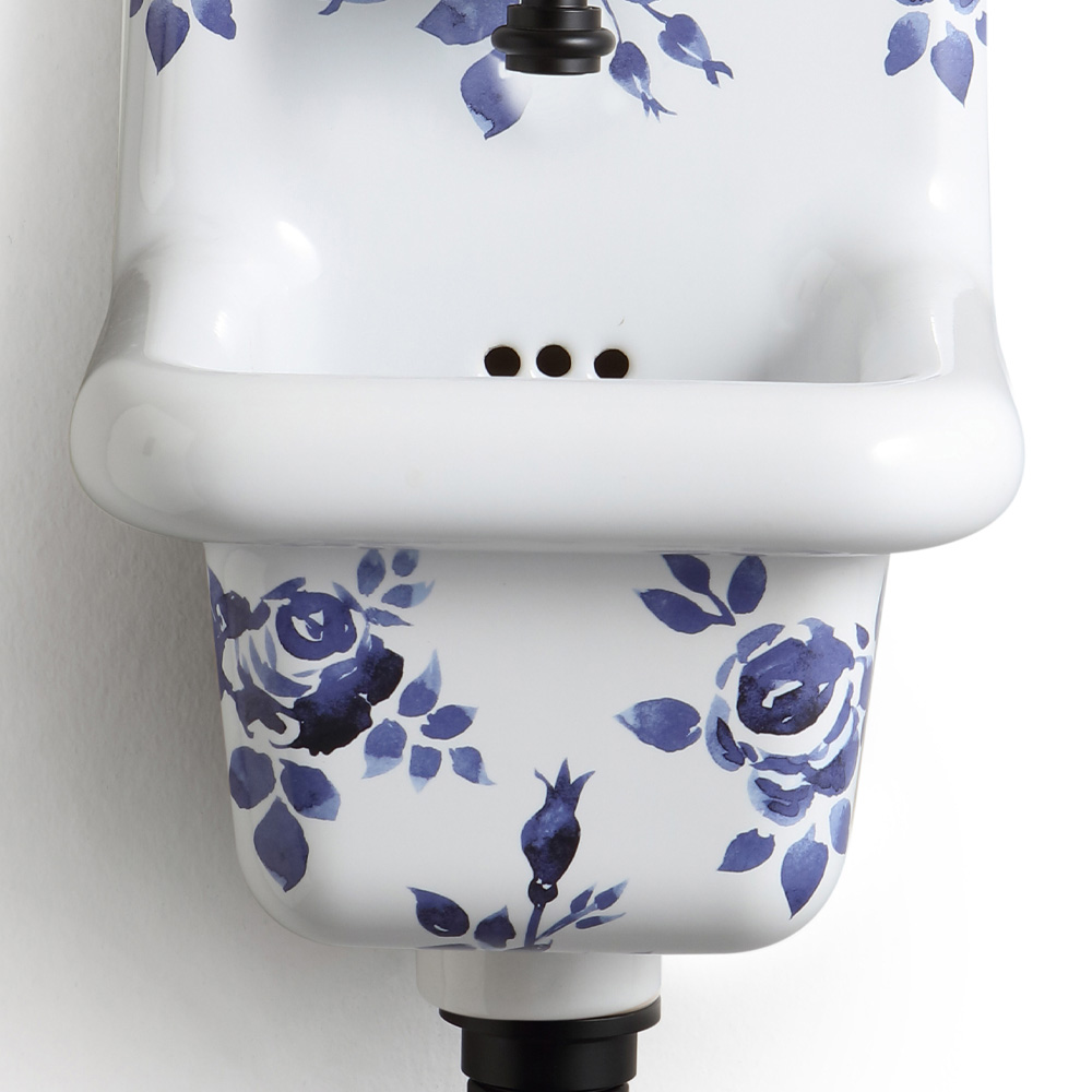 Závěsné umyvadlo ze vzorované barevné keramiky, vintage styl.