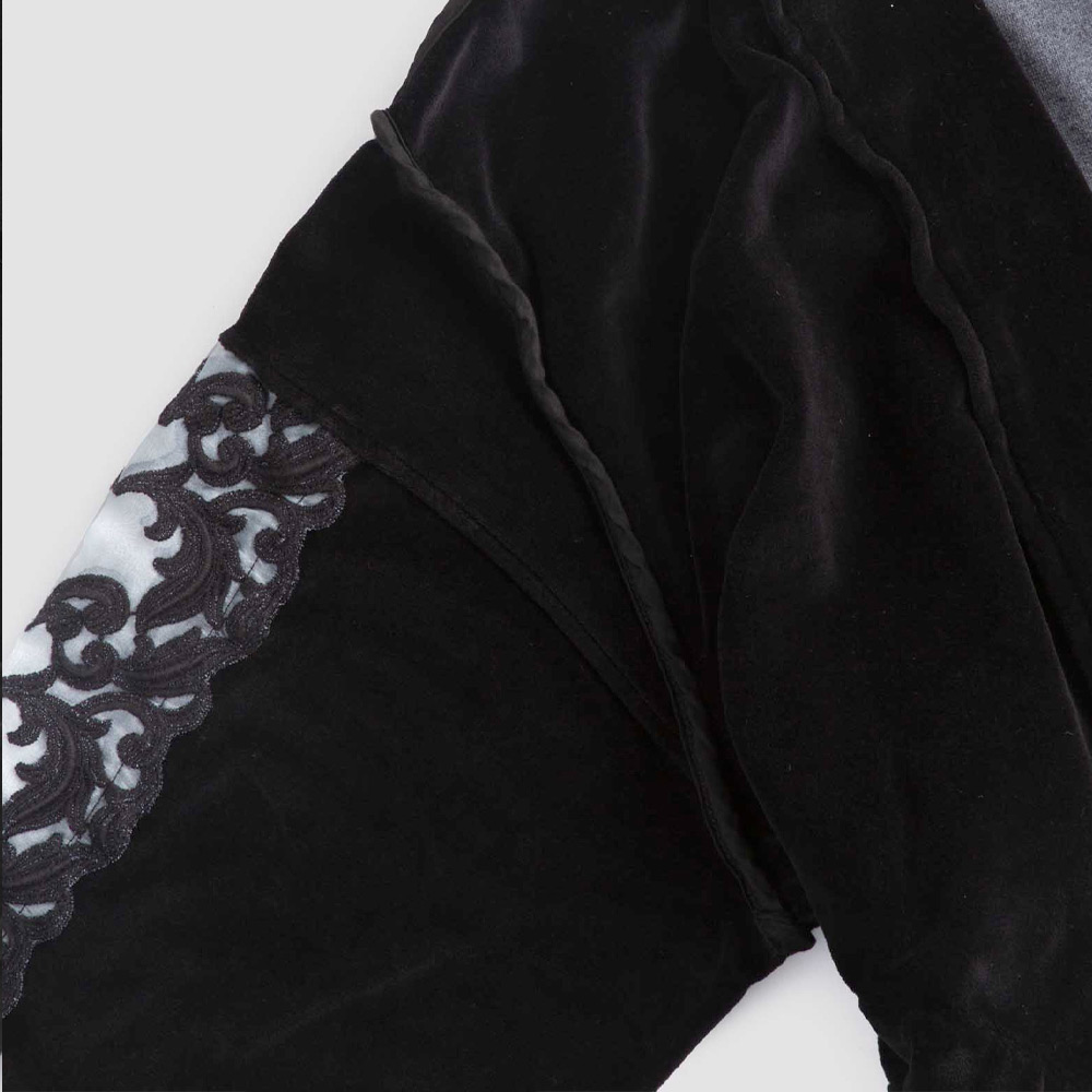 Černý šenilový župan nebo kimono s Farnese krajkou, elegance vyrobená v Itálii.