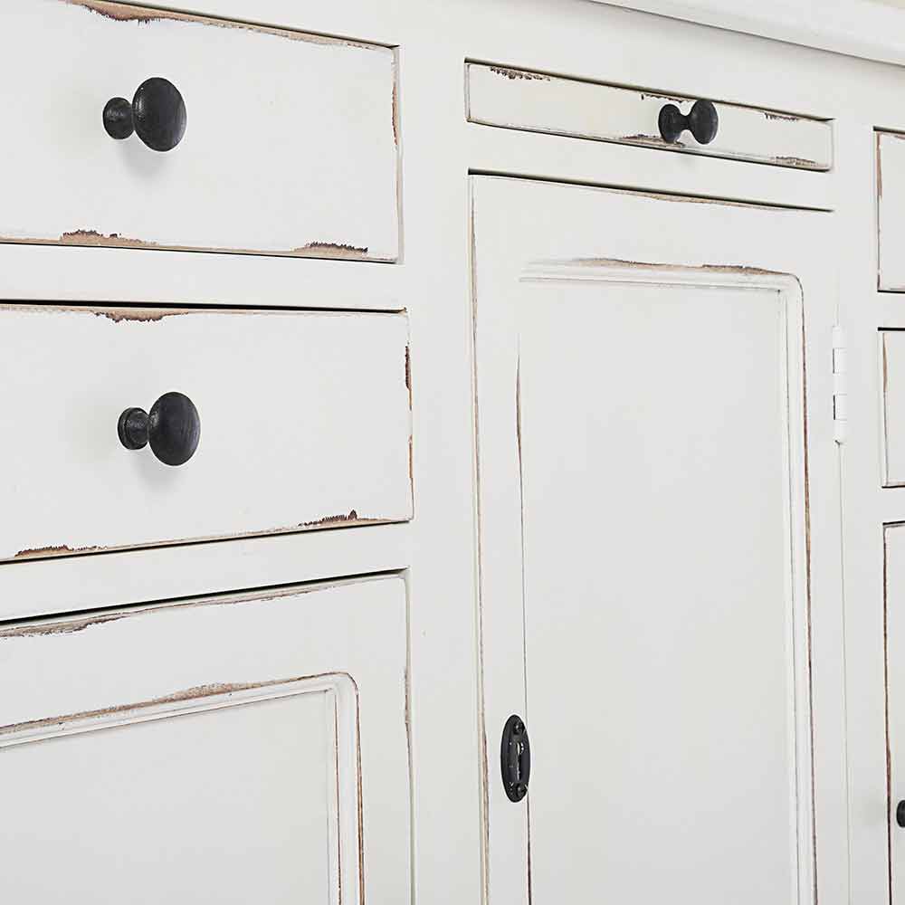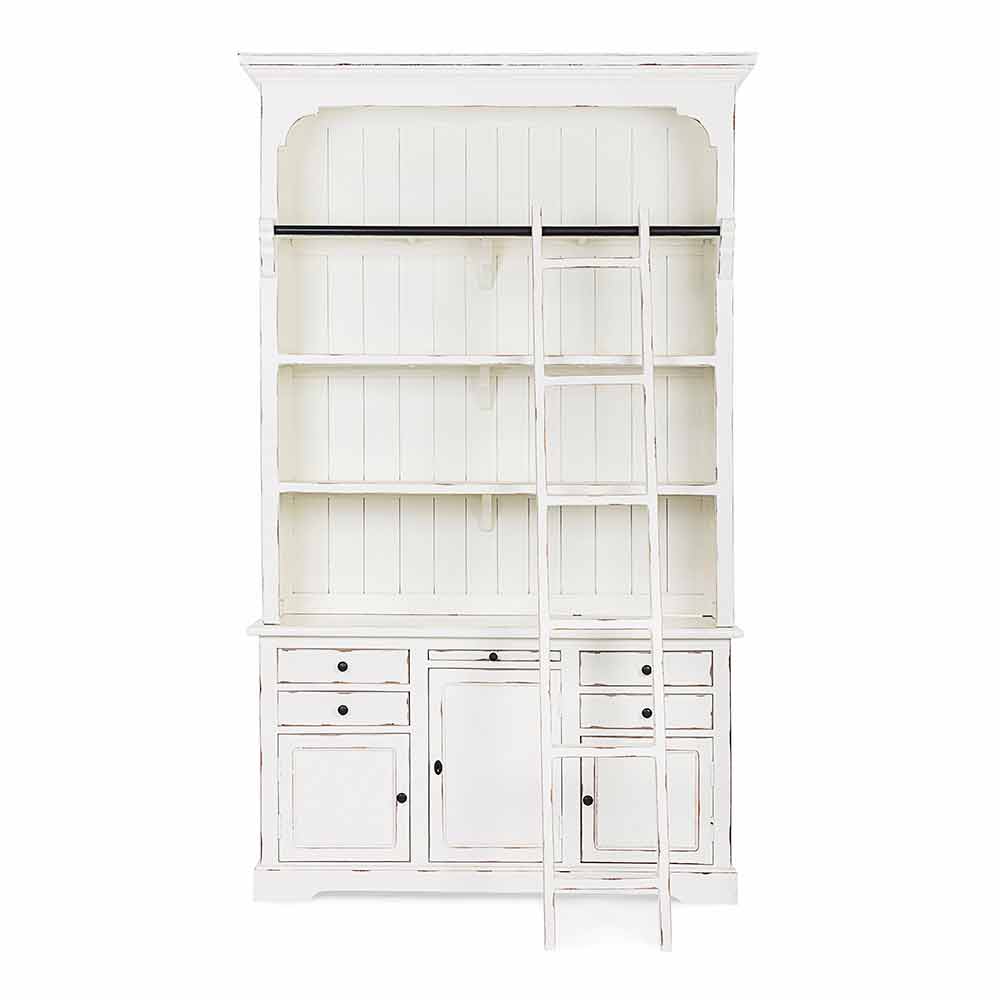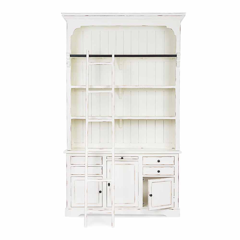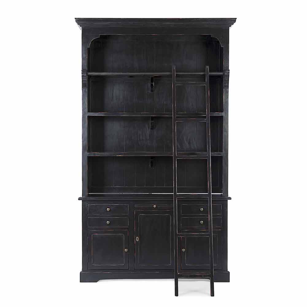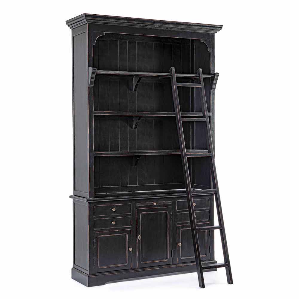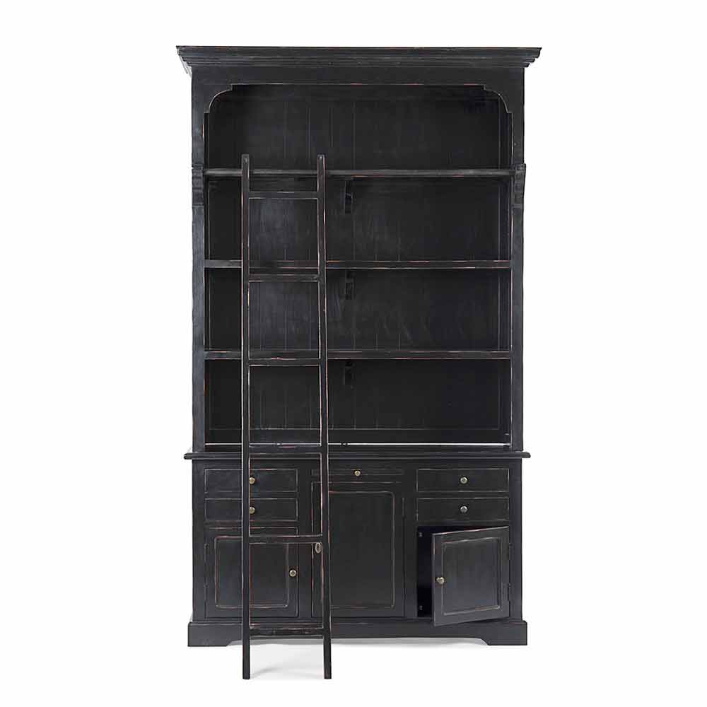 Podlahová knihovna v klasickém stylu z mangového dřeva a MDF s litinovými úchyty.