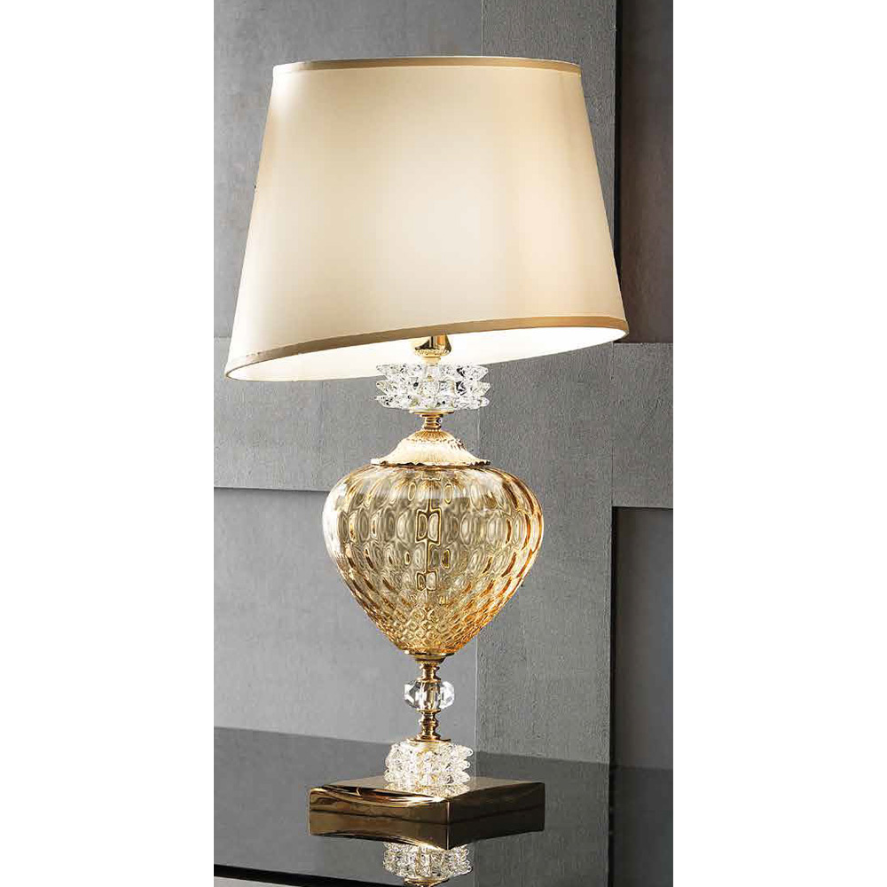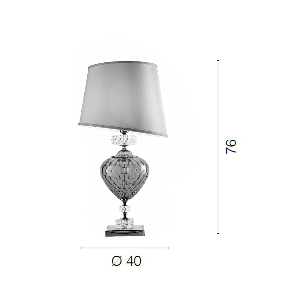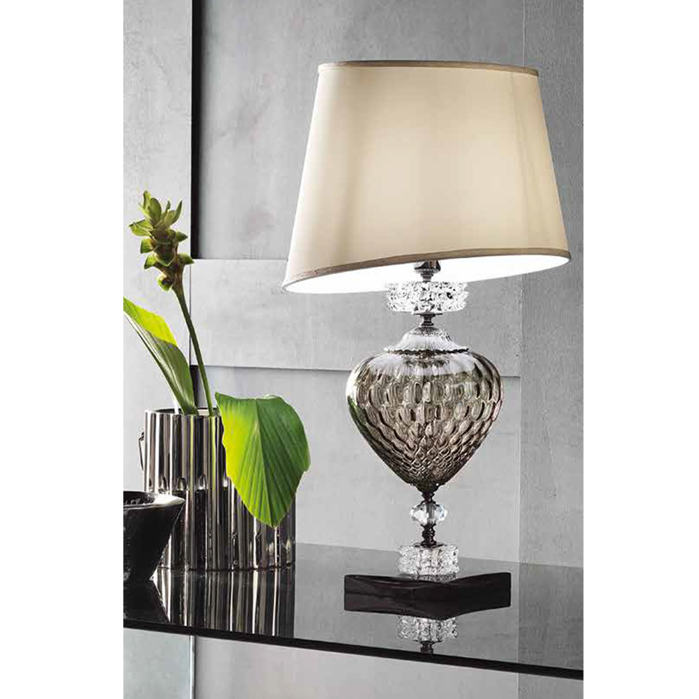Stolní lampa z ručně vyráběného skla a kovu se stínidlem, italský luxus.