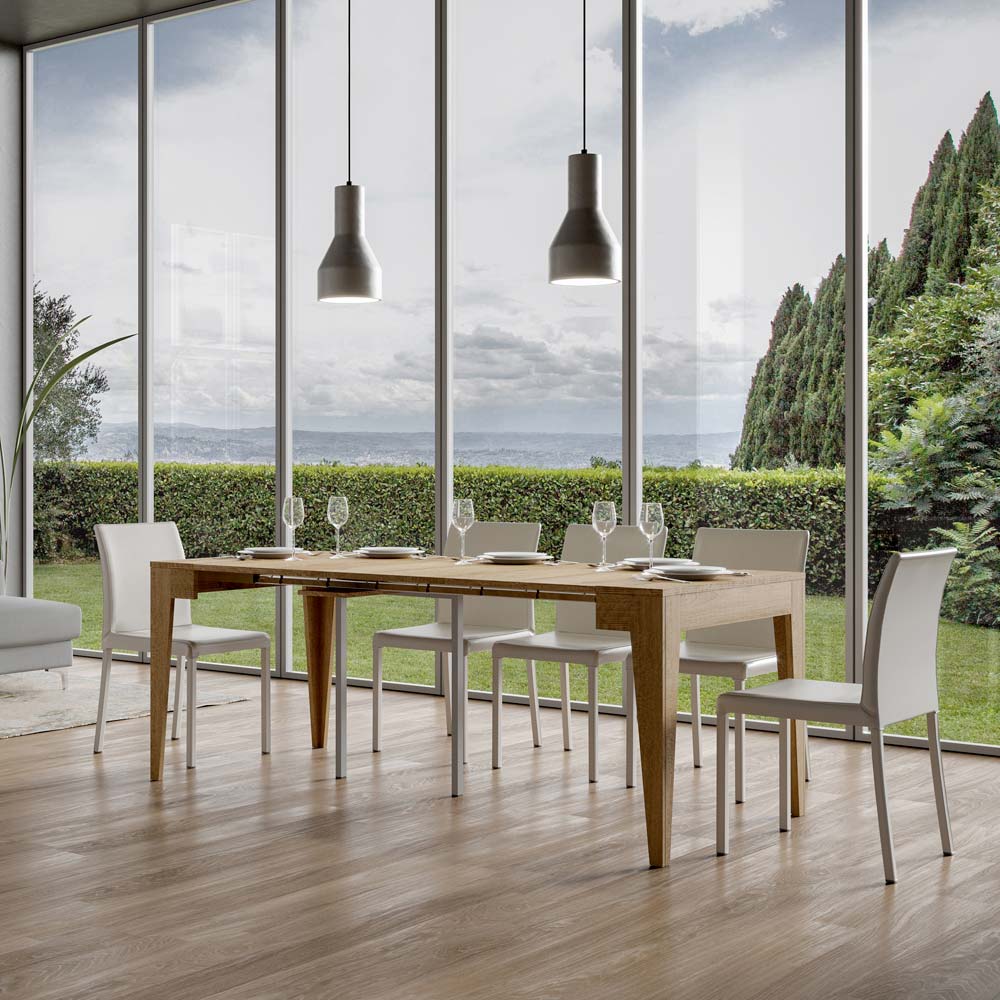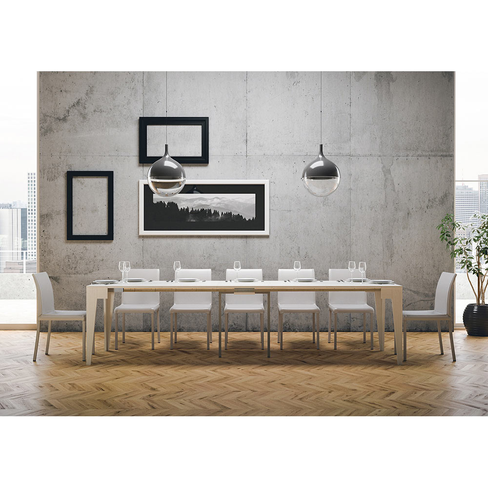 Tento rozkládací konzolový stolek je skutečnou poctou minimalistickému a současnému designu. Tento konzolový stolek je ideální pro ty, kdo hledají kus nábytku, který kombinuje čisté linie s úžasnou funkčností, a jednoduchým gestem se roztahuje, čímž okamžitě promění prostor z klidného koutu na útulné centrum pohostinnosti.