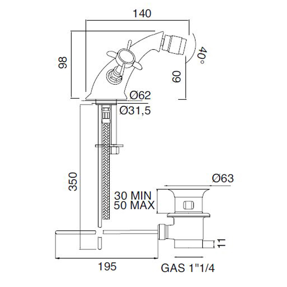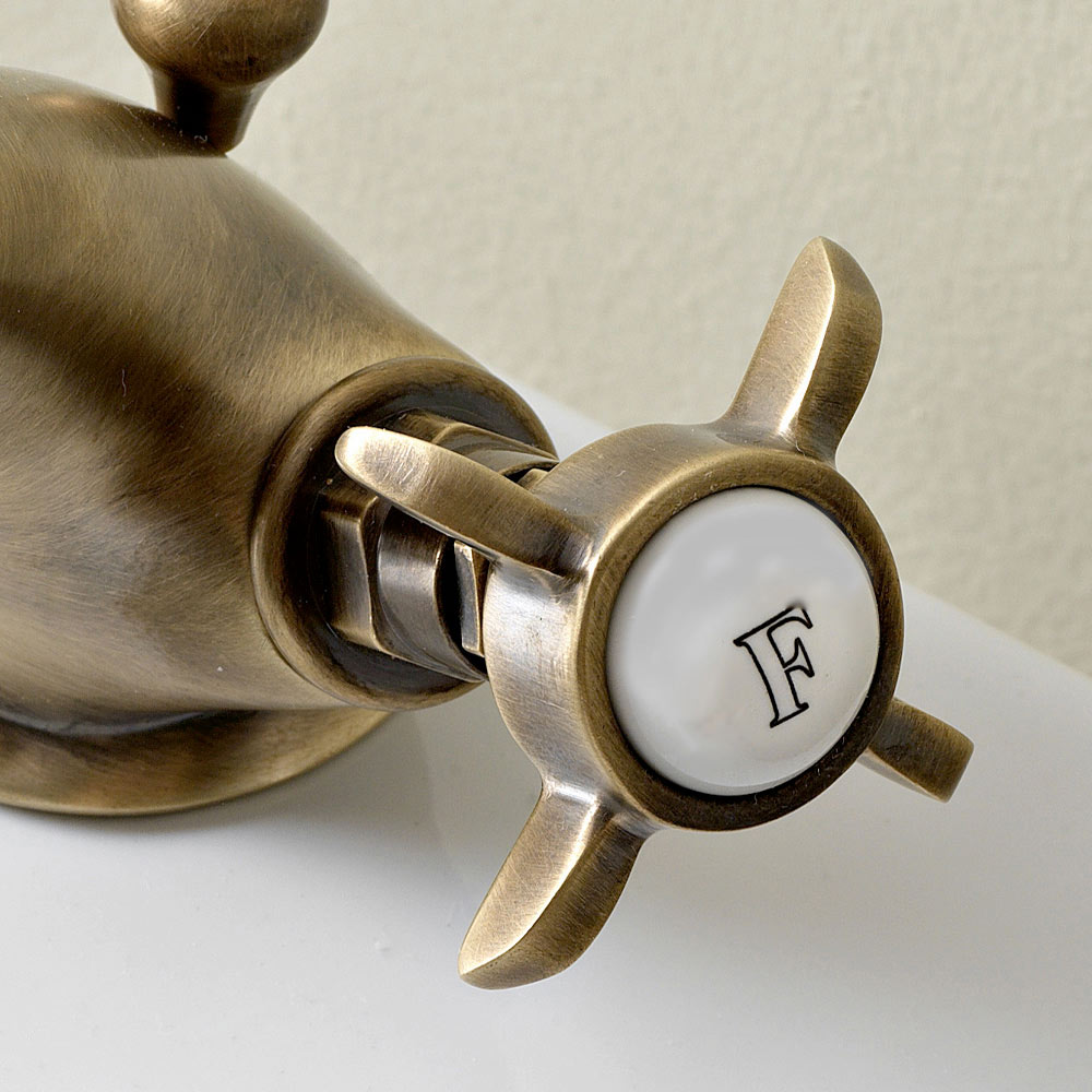 Jednootvorová bidetová baterie z ručně vyráběné mosazi v klasickém stylu vyrobená v Itálii.